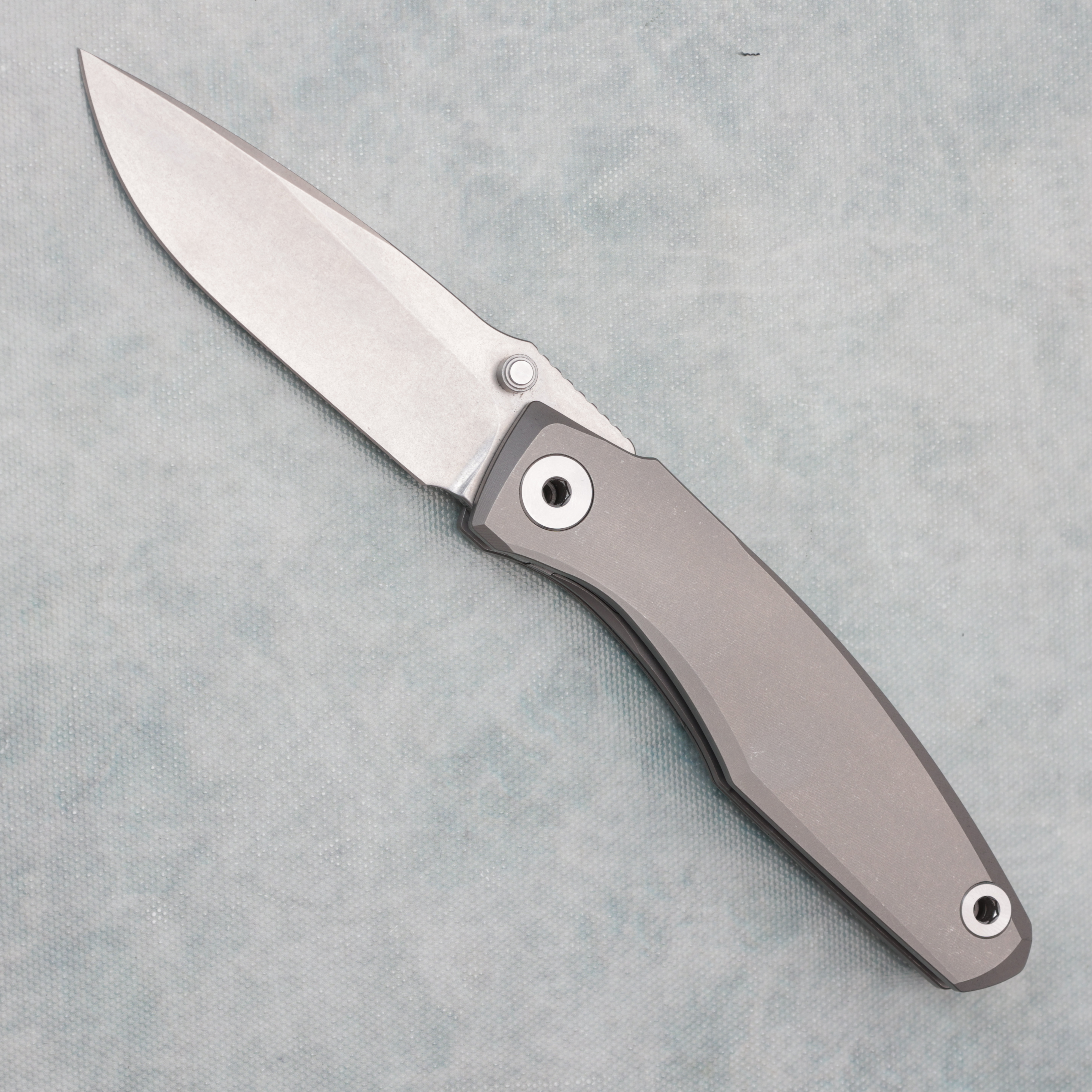 The Russ from Grambeau Knives is a titanium handle knife with a stonewash M390 hollow ground blade. The knife is OEM by Bestech. The russ has great action, and ergos. Excellent pre-owned condition in box.