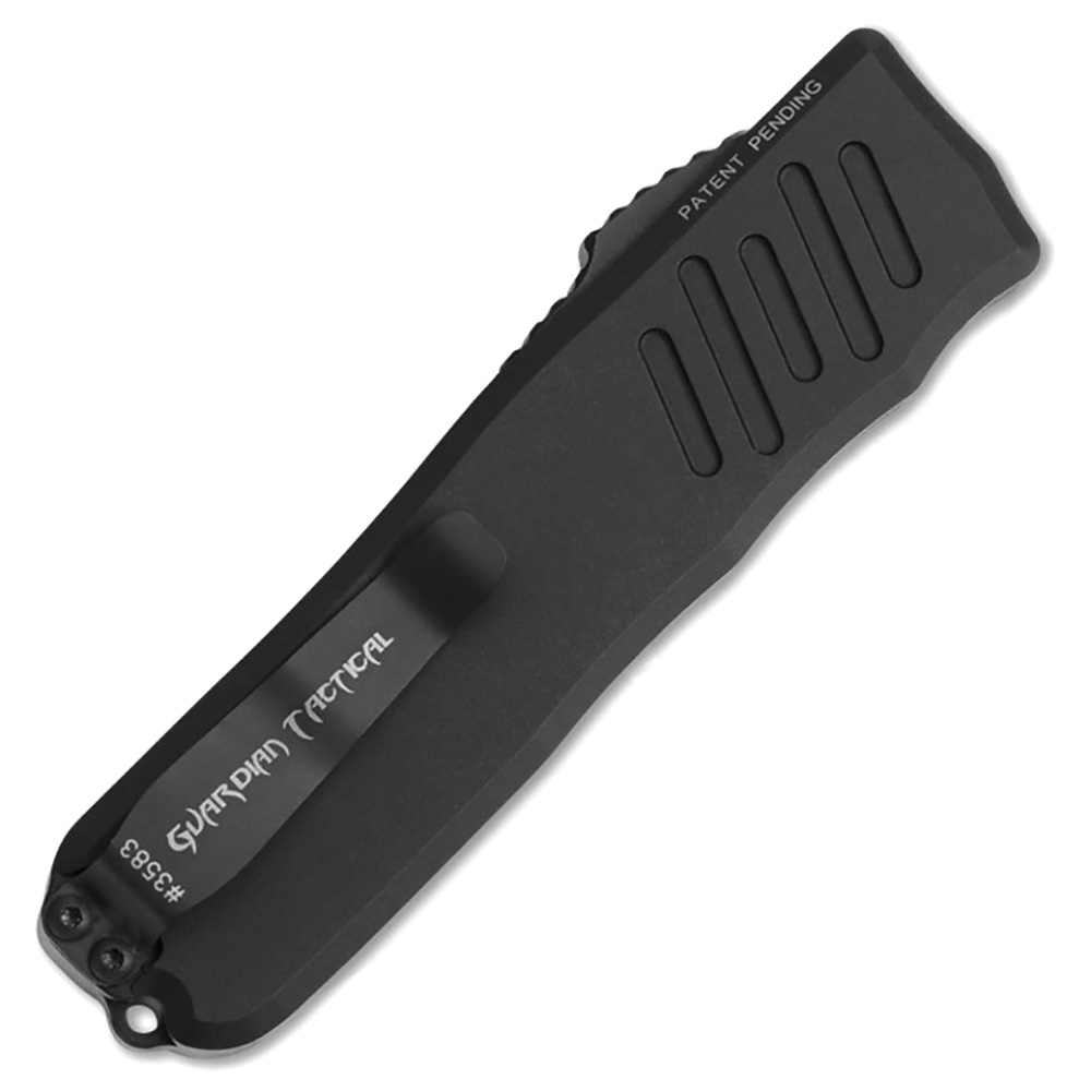 These brand new OTF automatic knives by Guardian Tactical are sure to impress. Super smooth and responsive action with their patented OTF mechanism. The well designed thumb slide rides on a steel plate with 3 ceramic balls that eliminate wear and tear. A new innovative locking mechanism is placed off center from the blade channel to avoid drag against the blade when operating the action. These features combined in this package remedy the friction that has caused problems with OTF knives since the beginning. The RECON-035 is the an excellent EDC size as well. Includes a deep carry pocket clip and an integral lanyard hole. 100% made in the USA!