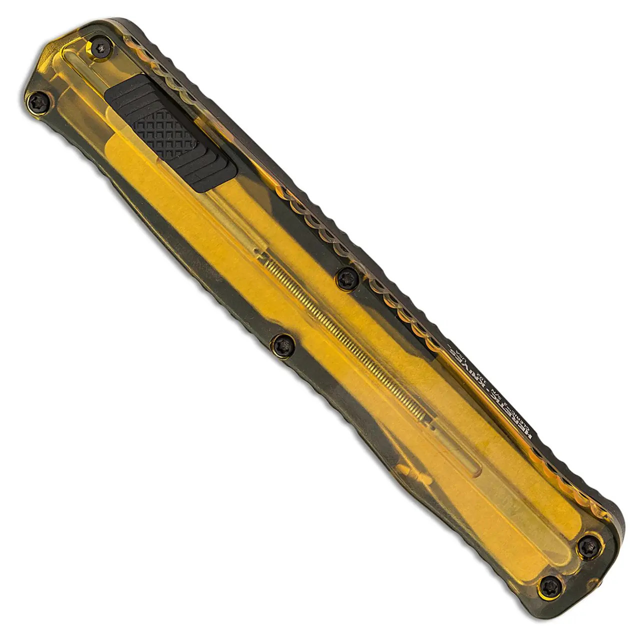The Heretic Knives Cleric II is a double action out the front auto with top quality fit and finish and super smooth D/A OTF action! It features a front mounted thumb slide for easy operation. One of the longest double action OTF knives in production and a strong competitor to the old Microtech Makora II, these are sure to please. Complete with a milled titanium rollerball pocket clip.