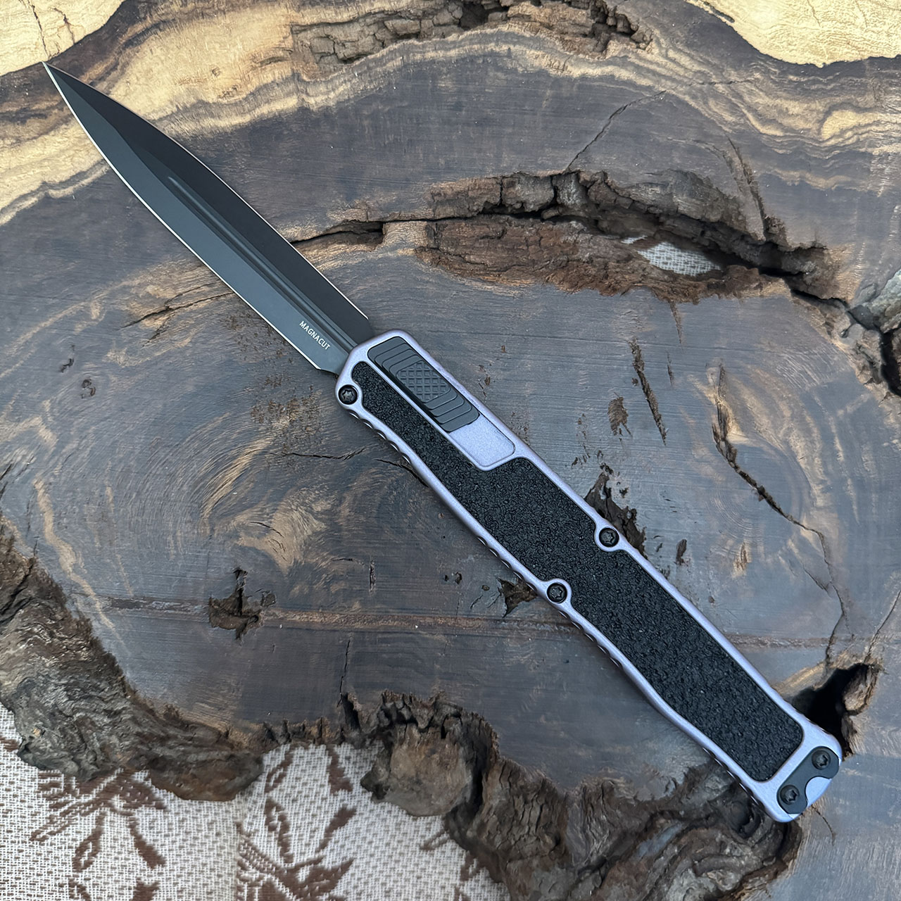 The Heretic Knives Cleric II is a double action out the front auto with top quality fit and finish and super smooth D/A OTF action. It features a front mounted thumb slide for easy operation. As one of the longest double action OTF knives in production and a strong competitor to the old Microtech Makora II, these are sure to please! Complete with a milled titanium rollerball pocket clip.
