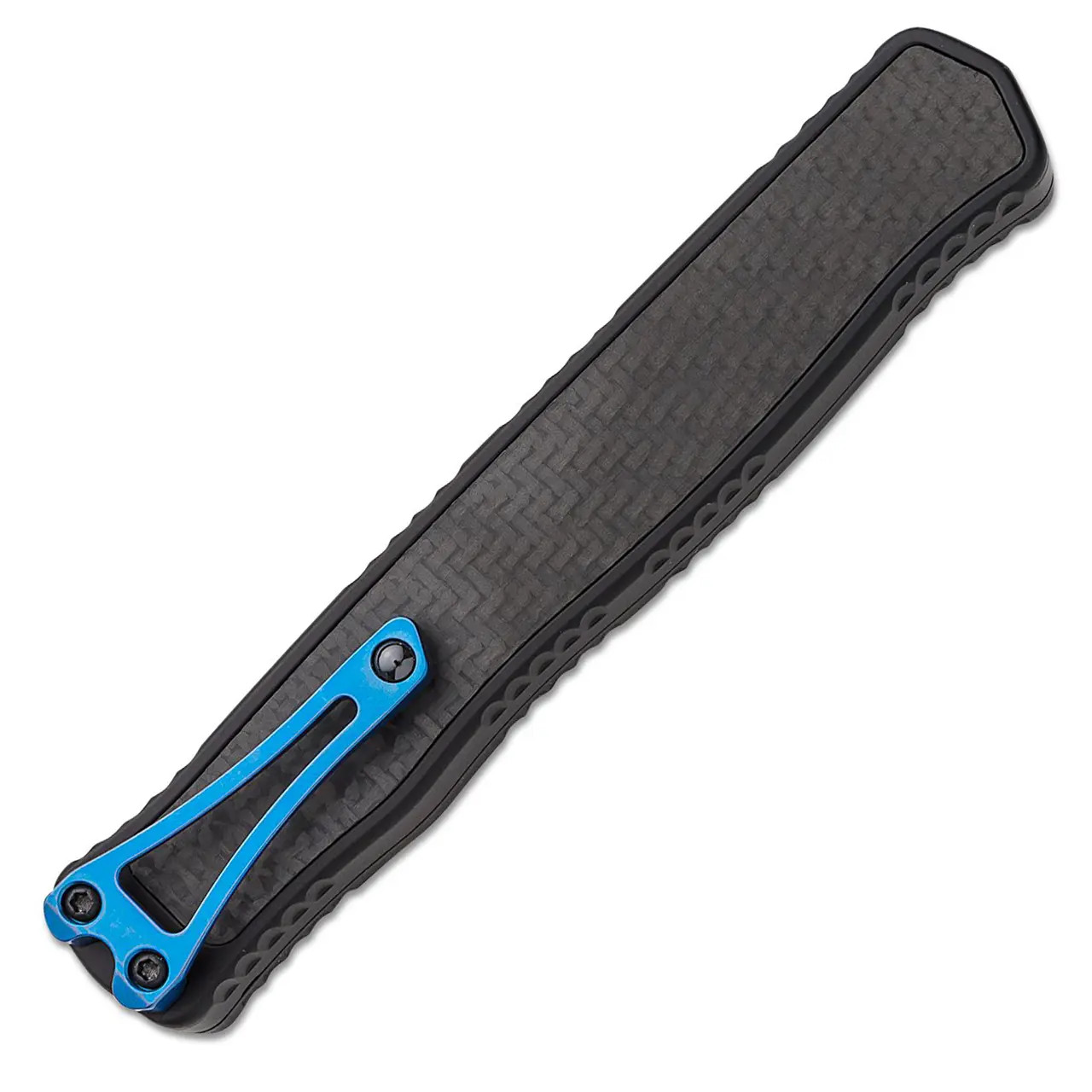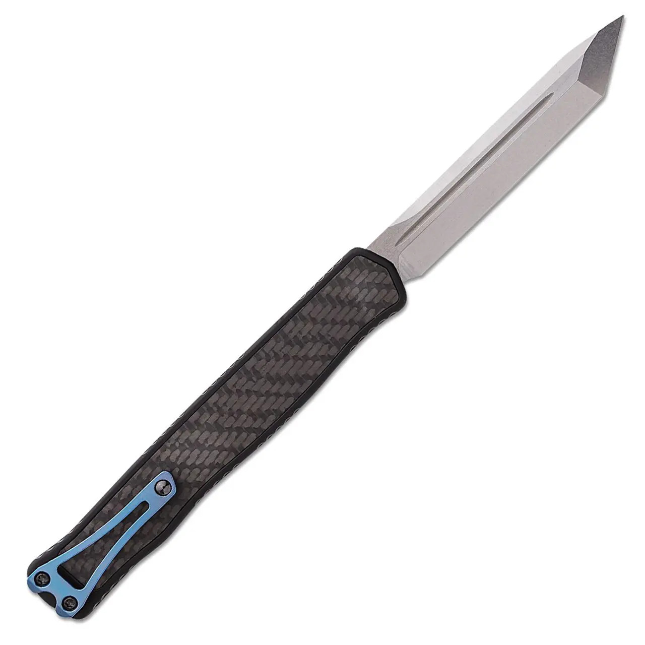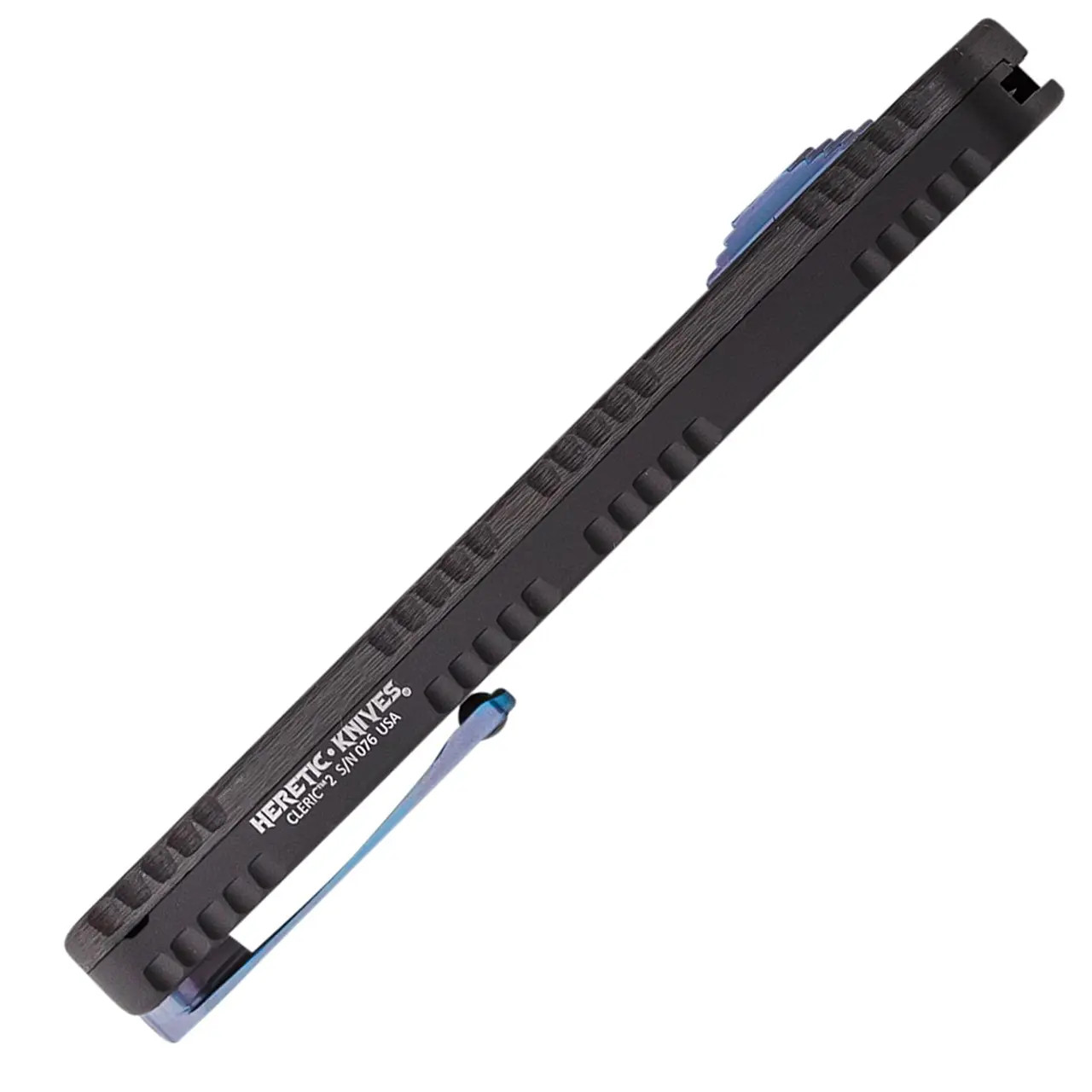 Heretic Knives Cleric II T/E Black Handle w/ Carbon Fiber Top Cover/Inlay Blue Ti Accents Stonewash Blade H019-2A-CF/BLU