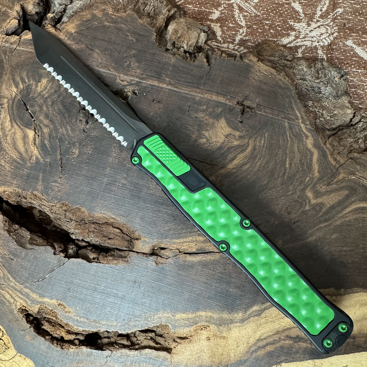 Heretic Knives Cleric II T/E Black Handle w/ Toxic Green Inlay DLC Serrated Blade H019-6C-TXHDW