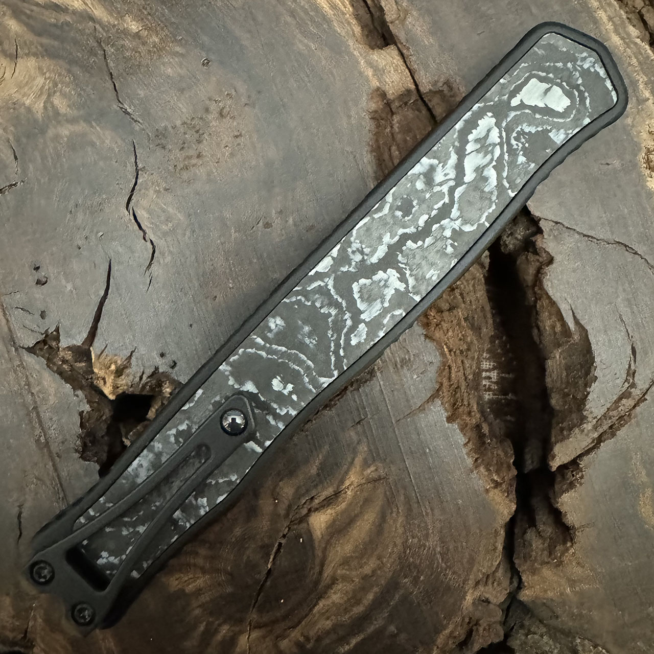 Heretic Knives Cleric II T/E Black Handle w/ White Camo Carbon Inlay DLC Full Serrated Blade H019-6C-WT/CC