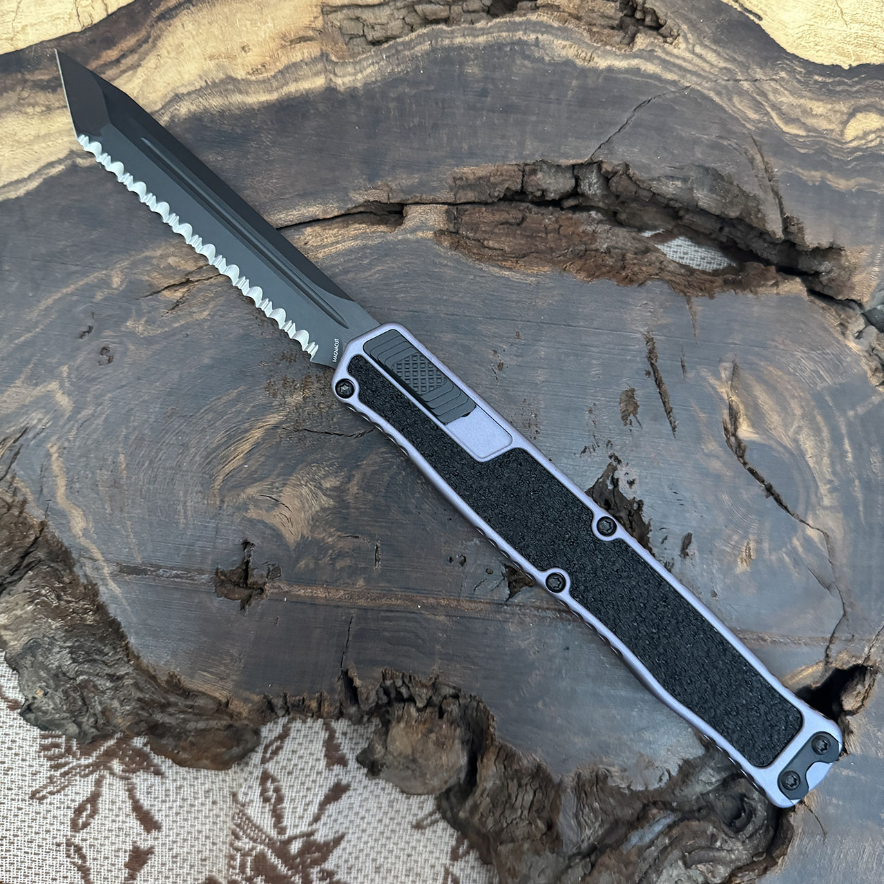 Heretic Knives Cleric II T/E Gray Handle DLC Full Serrated Blade H019-6C-GRY