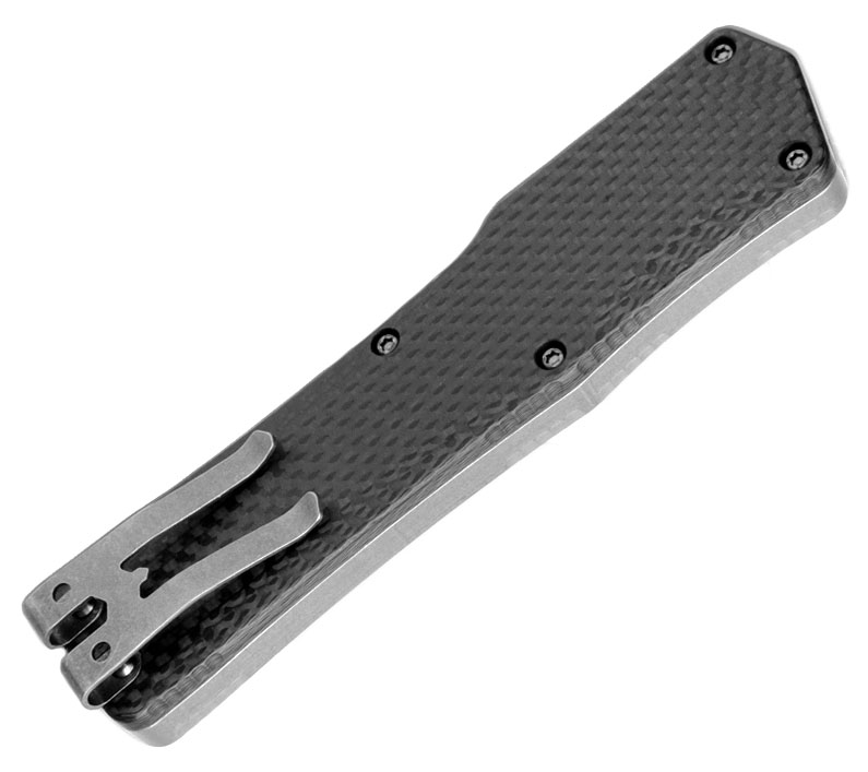 Heretic Knives Cleric OTF Auto Stainless Steel Carbon Fiber Stonewash Compound Tanto Blade H015-SSCF