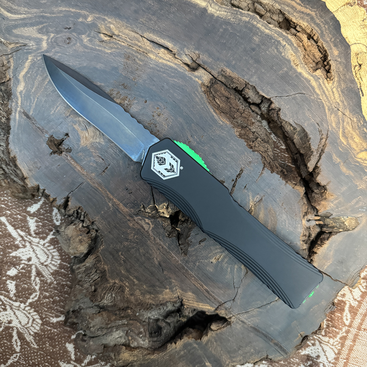 The Colossus double action OTF Auto has an excellent fit and finish as you'd expect from a high-end knife. The hefty aluminum body is very ergonomic and provides a solid grip with inlays and jimping around the edges. It has super smooth action with bearings underneath the thumb slide. This is a fantastic example of an OTF from Heretic that is reminisient of the original Microtech Scarab but new and improved!