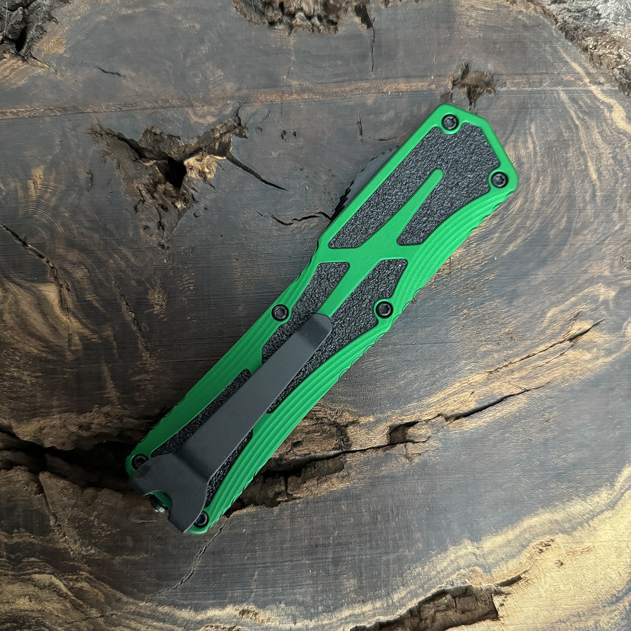 The Colossus double action OTF Auto has an excellent fit and finish as you'd expect from a high-end knife. The hefty aluminum body is very ergonomic and provides a solid grip with inlays and jimping around the edges. It has super smooth action with bearings underneath the thumb slide. This is a fantastic example of an OTF from Heretic that is reminisient of the original Microtech Scarab but new and improved!