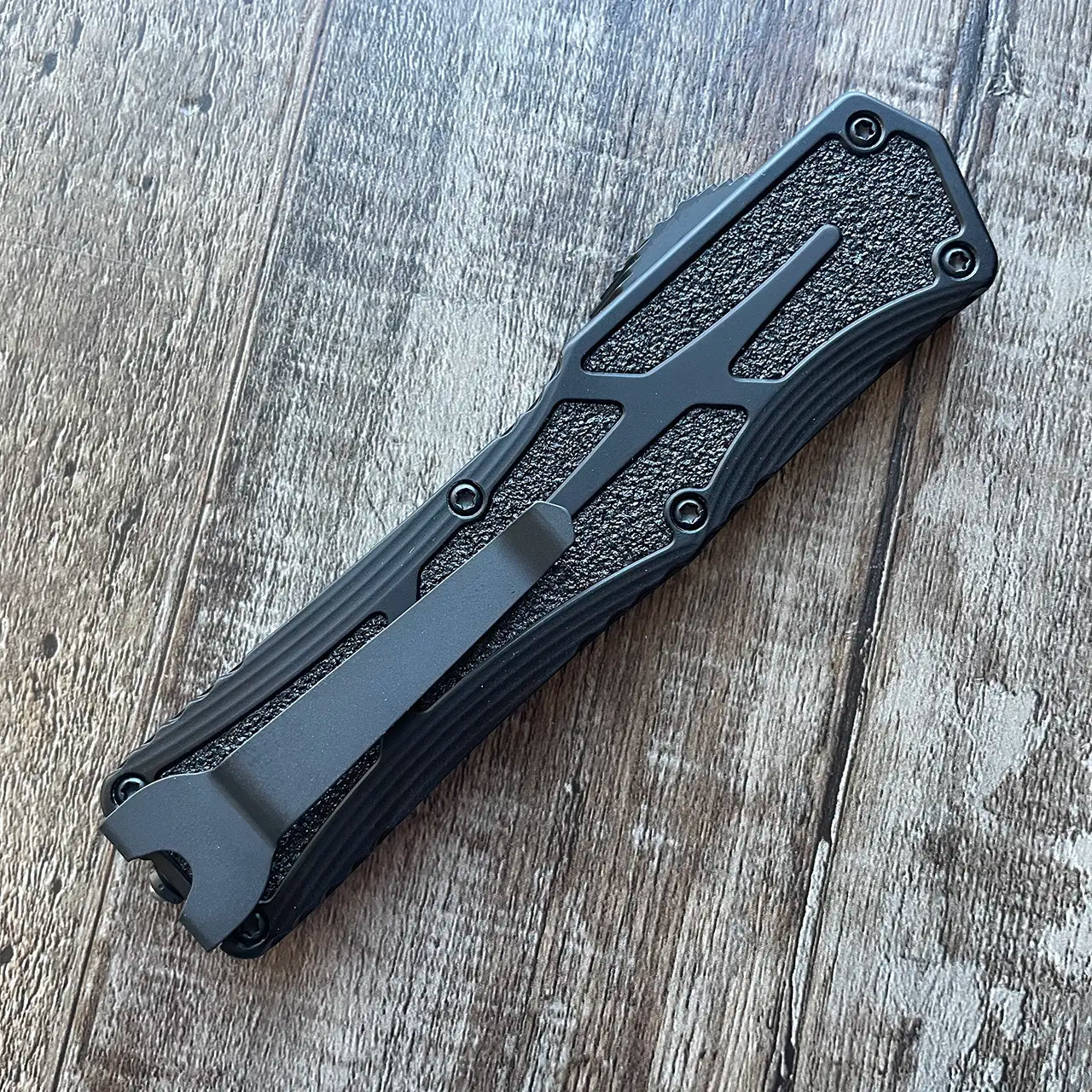 The Colossus double action OTF Auto has an excellent fit and finish as you'd expect from a high-end knife. The hefty aluminum body is very ergonomic and provides a solid grip with inlays and jimping around the edges. It has super smooth action with bearings underneath the thumb slide. This is a fantastic example of an OTF from Heretic that is reminisient of the original Microtech Scarab but new and improved!