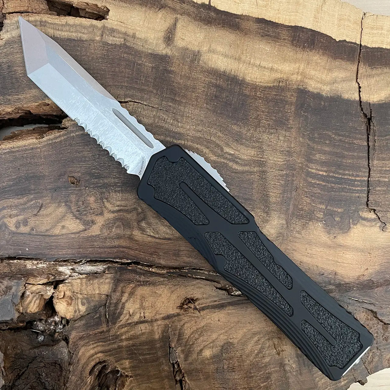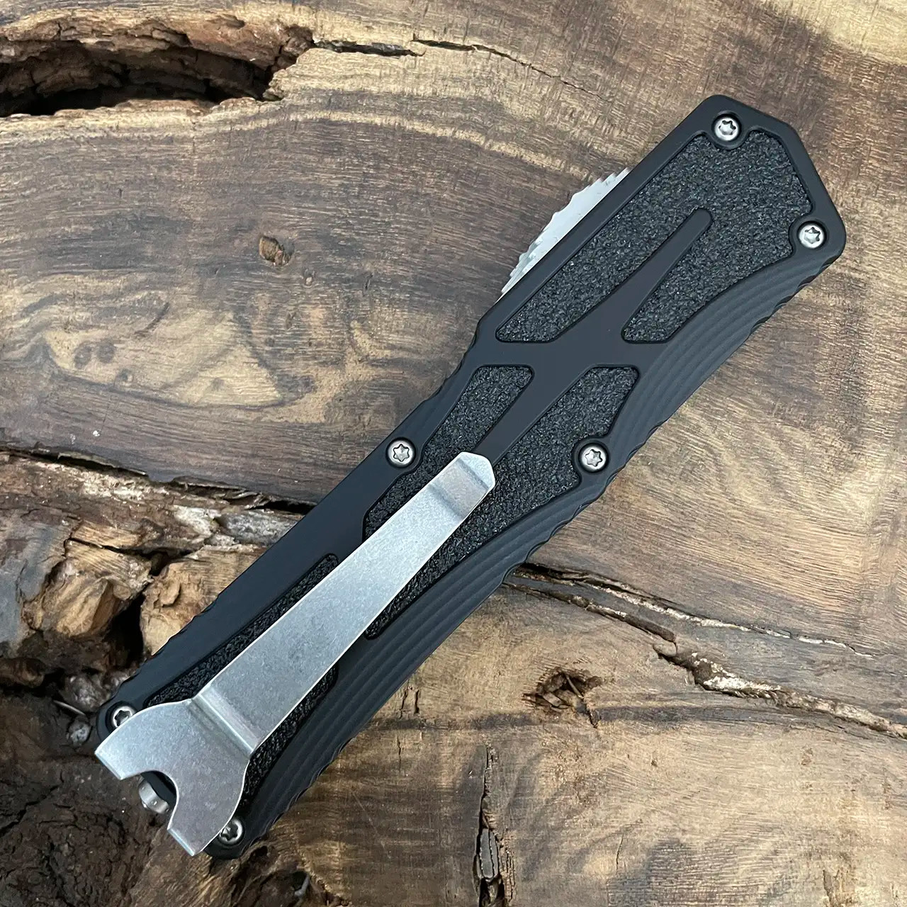The Colossus double action OTF Auto has an excellent fit and finish as you'd expect from a high-end knife. The hefty aluminum body is very ergonomic and provides a solid grip with inlays and jimping around the edges. It has super smooth action with bearings underneath the thumb slide. This is a fantastic example of an OTF from Heretic that is reminisient of the original Microtech Scarab but new and improved!