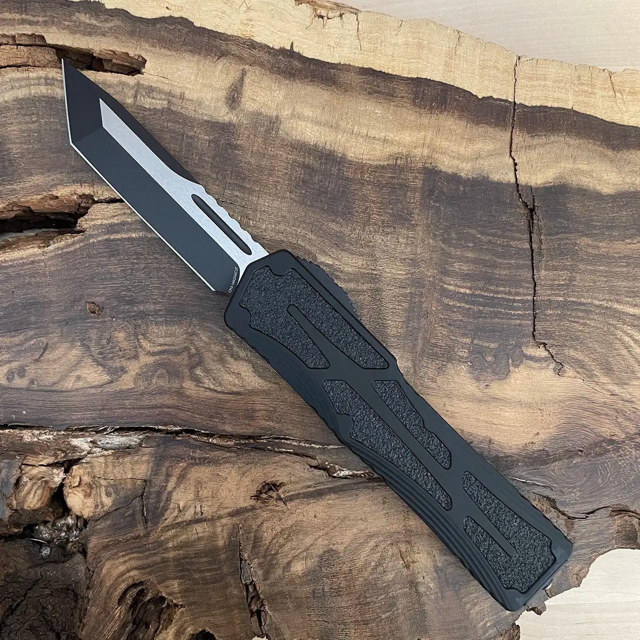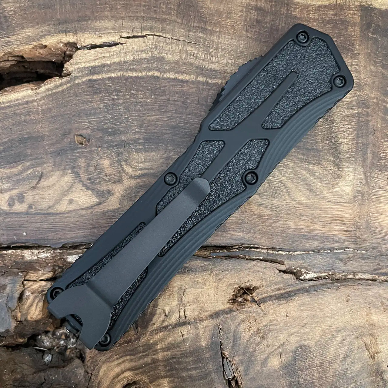 The Colossus double action OTF Auto has an excellent fit and finish as you'd expect from a high-end knife. The hefty aluminum body is very ergonomic and provides a solid grip with inlays and jimping around the edges. It has super smooth action with bearings underneath the thumb slide. This is a fantastic example of an OTF from Heretic that is reminisient of the original Microtech Scarab but new and improved!
