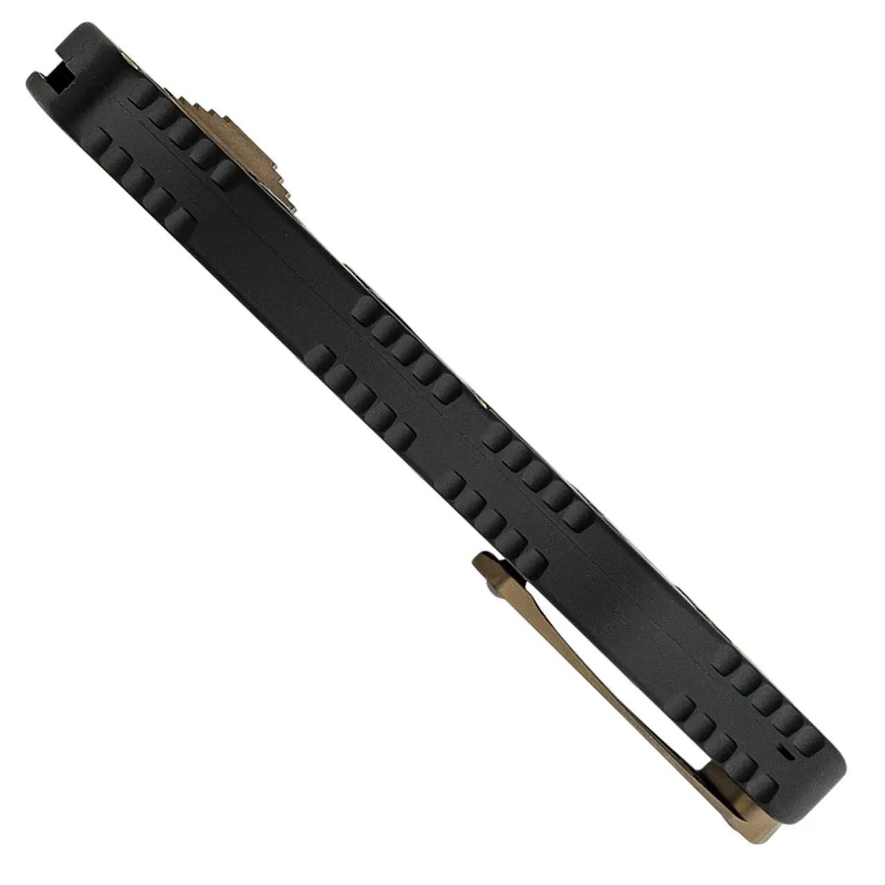 The Heretic Knives Cleric II is a double action out the front auto with top quality fit and finish and super smooth D/A OTF action! It features a front mounted thumb slide for easy operation. One of the longest double action OTF knives in production and a strong competitor to the old Microtech Makora II, these are sure to please. Complete with a milled titanium rollerball pocket clip.