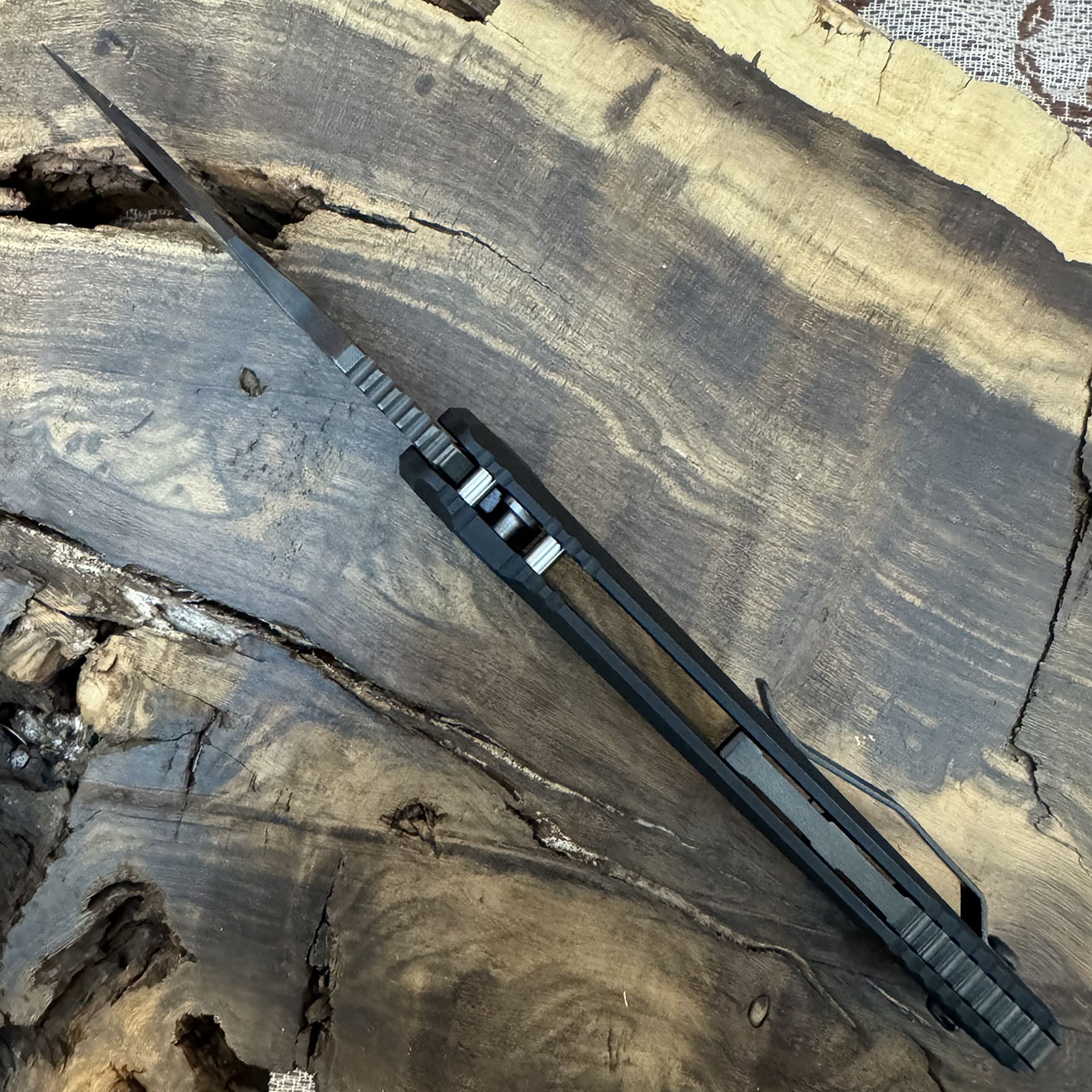 The Wraith is a fantastic integral knife, now in this automatic version. Fairly large and very sturdy, the handle is milled from a single piece of material with a cutout for the bolster which makes accessing the internals easier for maintenance and adds a touch of style with different materials. Smooth, hard hitting automatic action and solid lock up. Featuring an integrated lanyard hole and a tip up carry pocket clip. The spine adds some grooves for an excellent grip. A great new knife with top quality materials and craftsmanship, all at unbelievable price!
