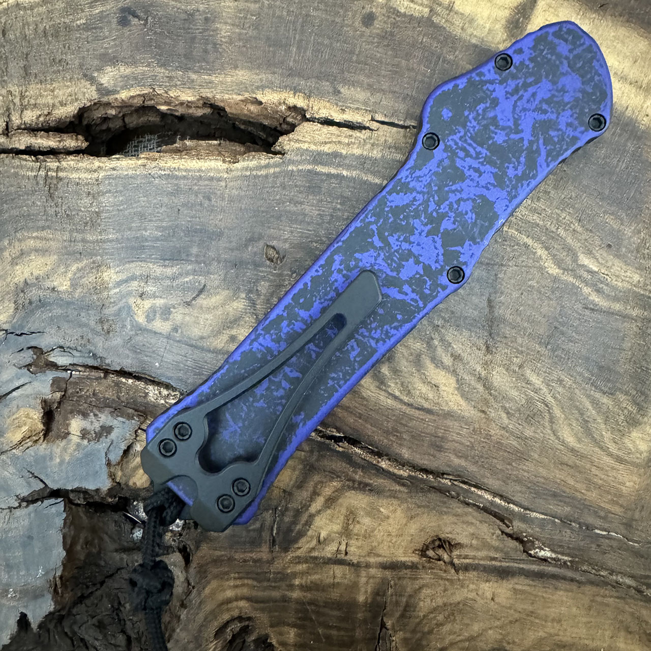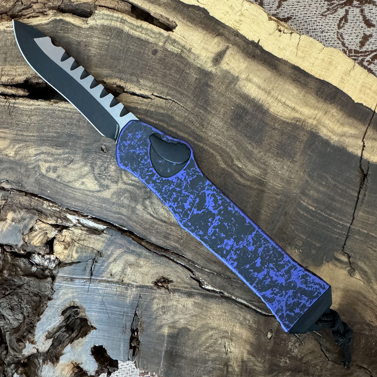 Heretic Knives Hydra OTF Auto Breakthrough Purple Handle Two Tone Recurve Blade H008-10A-BRKPU