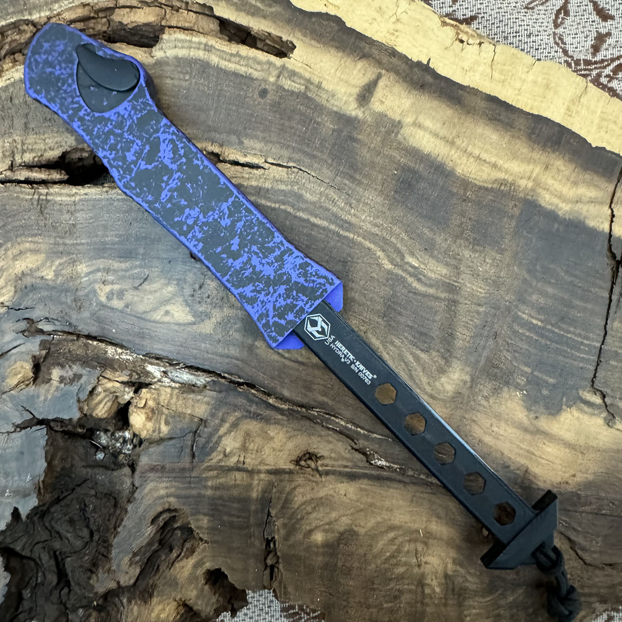 The newly refreshed Hydra from Heretic Knives is a powerful single action out the front auto with excellent fit and finish, overbuilt toughness, and rocket fast action! It features a unique swiveling button cover safety for safe pocket carry. The handle is comfortably contoured and textured for secure use. The blade has aggressive jimping on the spine for a signature look. Complete with a double pronged pocket clip and a carbon fiber charging handle insert with lanyard.