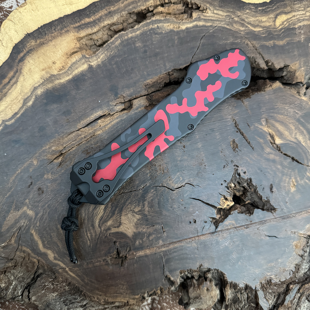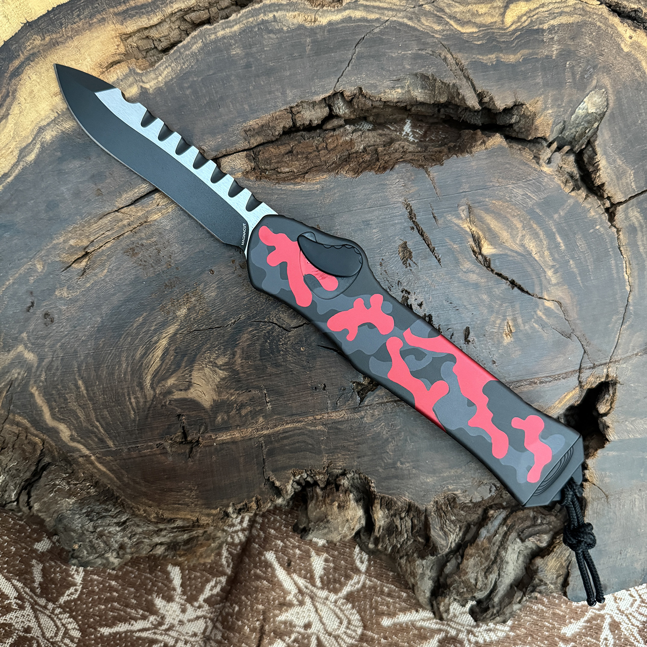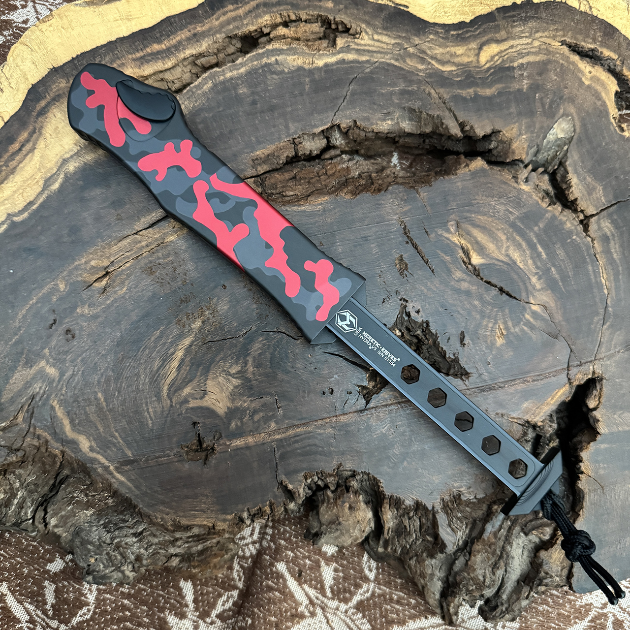 Heretic Knives Hydra OTF Auto Red Camo Handle Two Tone Recurve Blade H008-10A-RCAMO