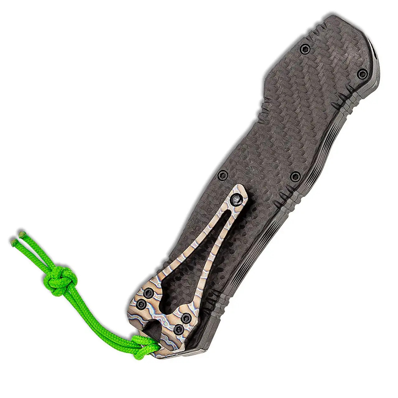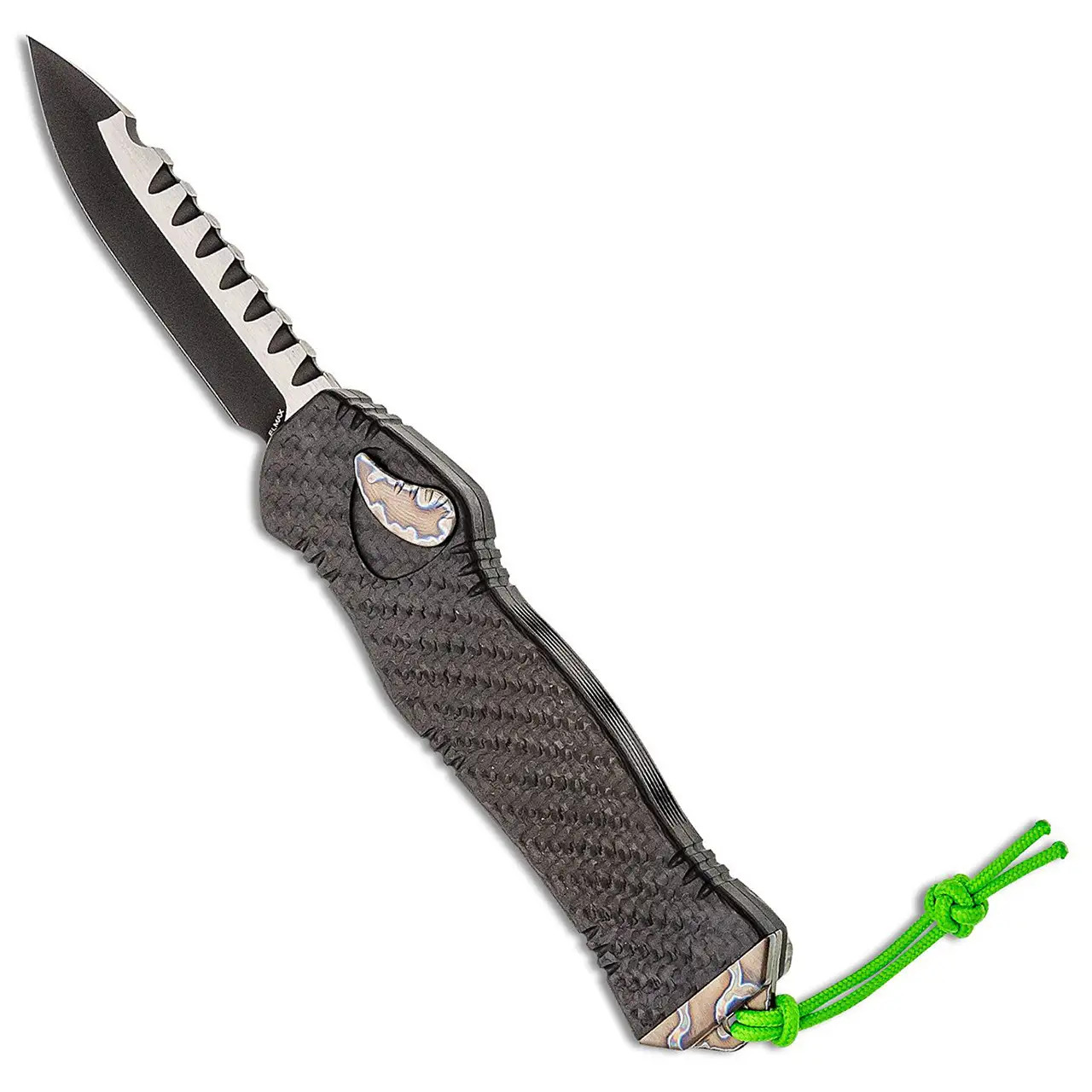 Heretic Knives Hydra OTF Auto S/E Carbon Fiber Handle Two Tone DLC Blade Flamed Titanium H007-11A-CF/FTi