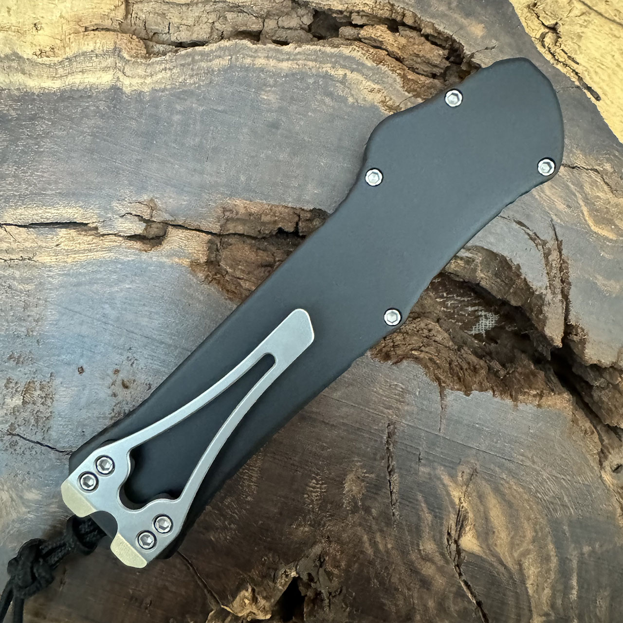 Heretic Knives Hydra OTF Auto T/E Black Handle Stonewash Full Serrated Blade H006-2C