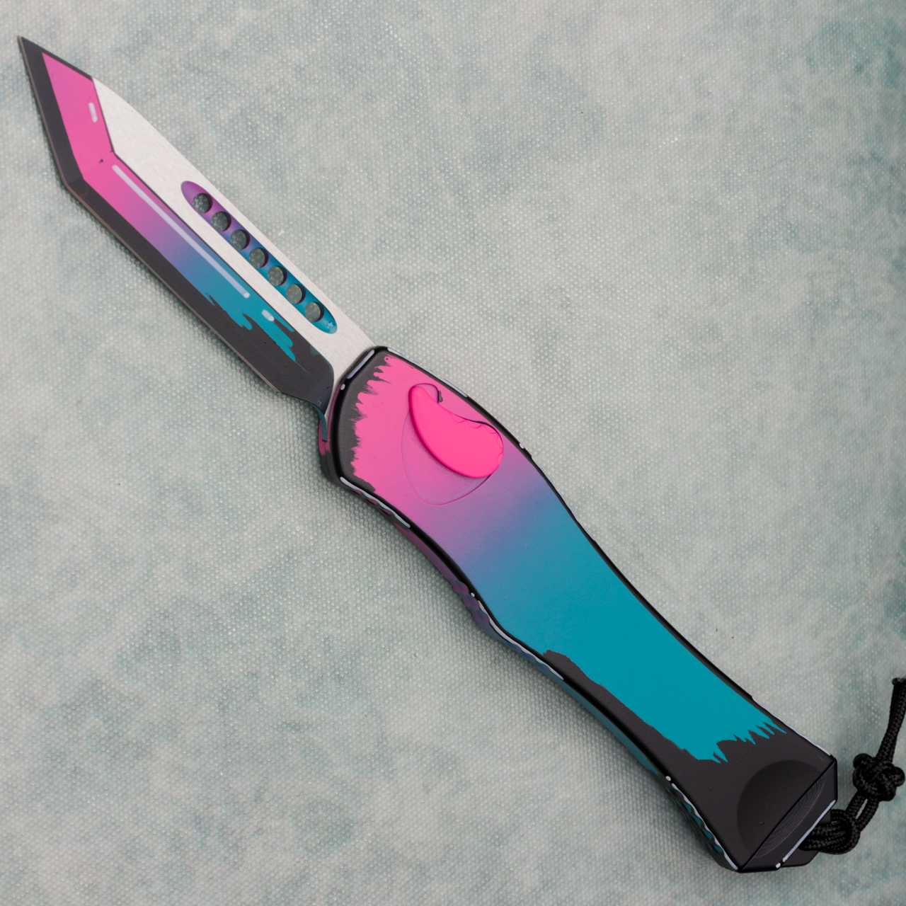 Heretic Knives Hydra V4 T/E OTF Auto Miami Vice Cel Shade Handle Miami Vice Cel Shade Blade H406-CS-MV