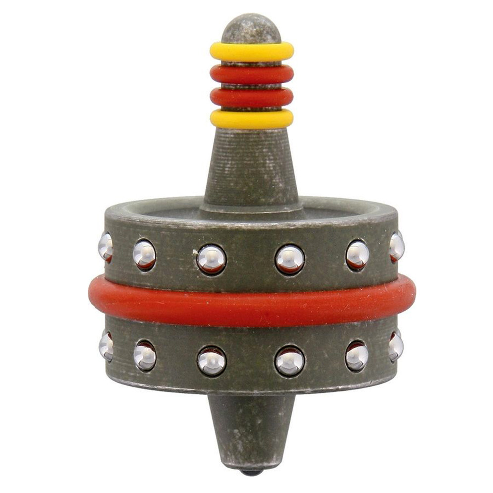 Heretic's spinning top design features a 303 stainless steel body with a total of 24, 440C ball bearings around the body. The Inception also features Buna-N grade bumper and grip o-rings, with a silicon nitride ball bearing pressed into the bottom of the top, in order to reduce friction while spinning. These are some really cool, high quality tops with good spin times.