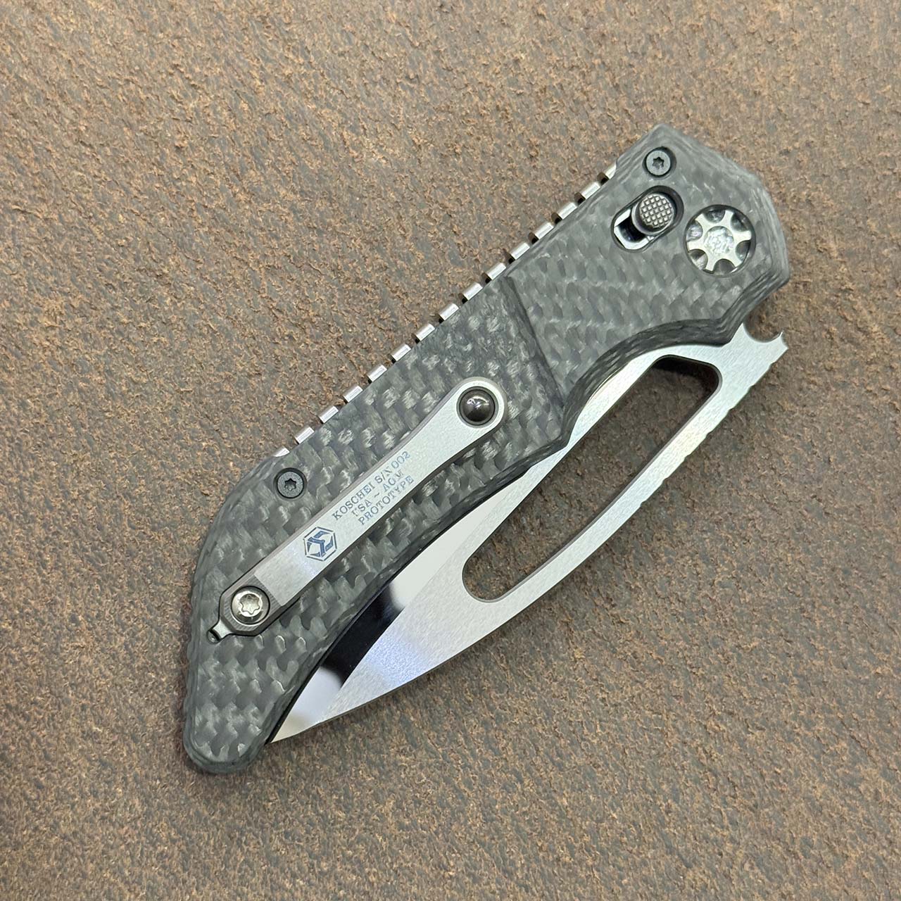 Heretic Knives Koschei Custom Crossbar Lock Carbon Fiber Handle Hand Ground High Polish M390 Blade Prototype
