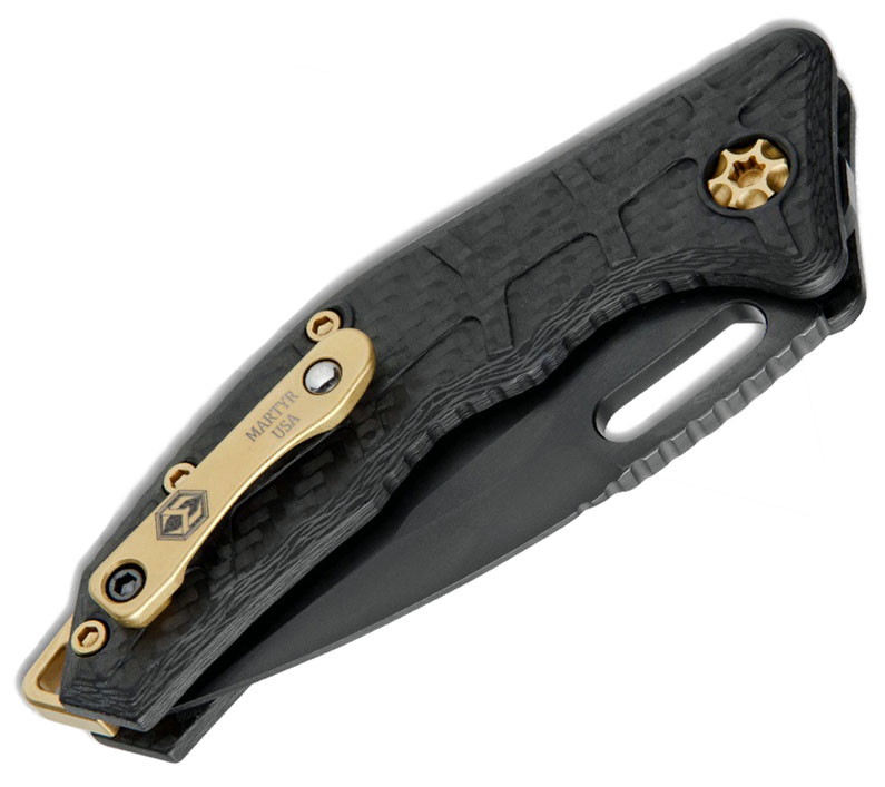 Heretic Knives Martyr Auto Recurve Carbon Fiber DLC Blade Gold TiN HW