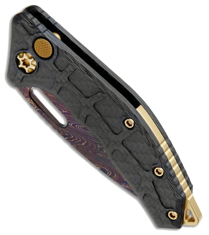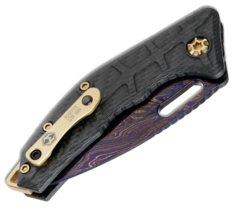 Heretic Knives Martyr Auto Tanto Carbon Fiber Blue Damascus Gold TiN HW