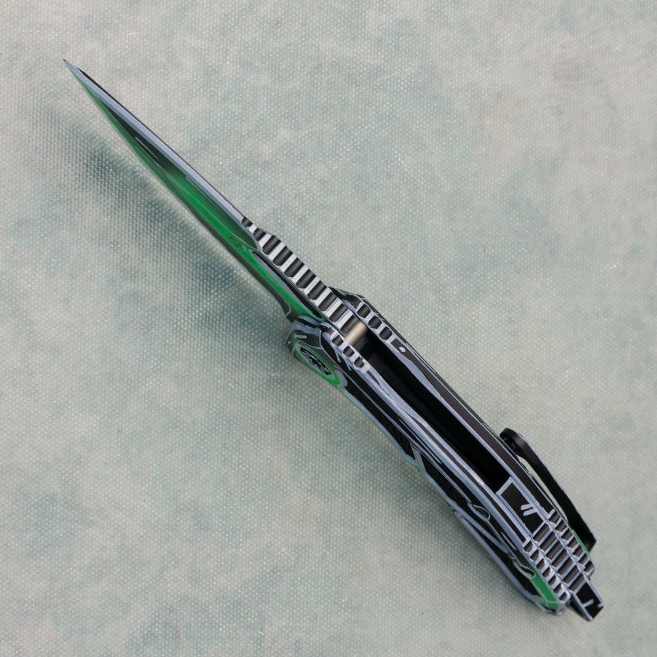 Heretic Knives Medusa Manual Tanto Toxic Green Negative Cel Shading w/ Black Grip Tape Inlays H009-NCS-TX