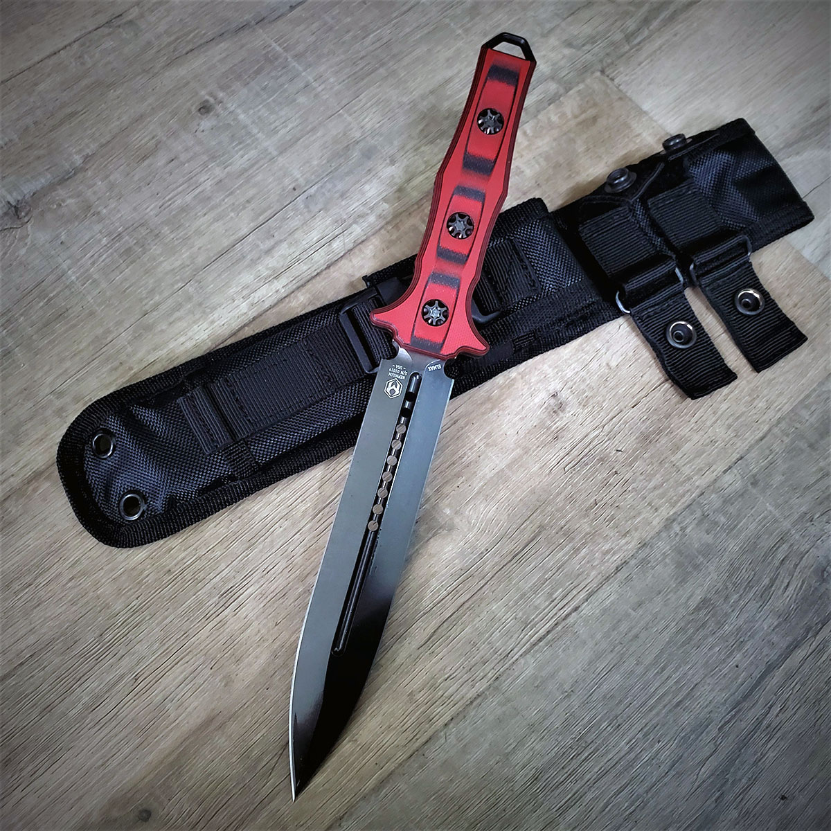 Heretic Knives Nephilim Fixed Blade D/E Dagger Red Black G-10 Handle DLC Blade H003-6A-REDBLK