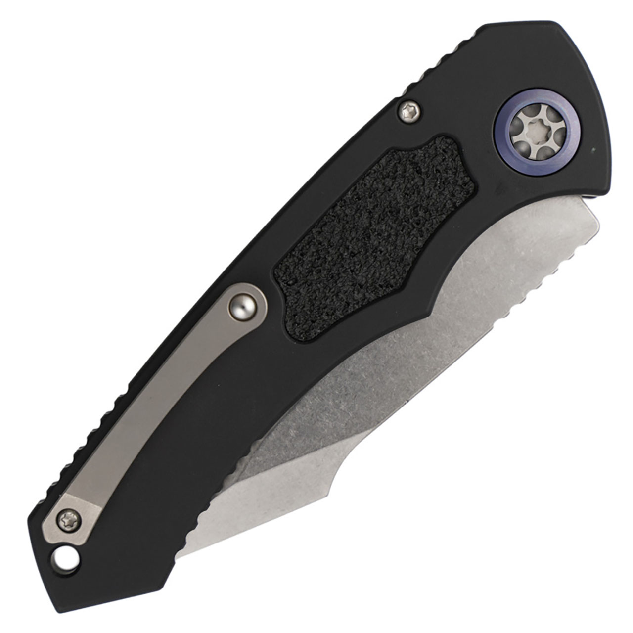 Heretic Knives Pariah Auto Black Handle w/ Black Grip Inlays Stonewashed Blade H048-2A