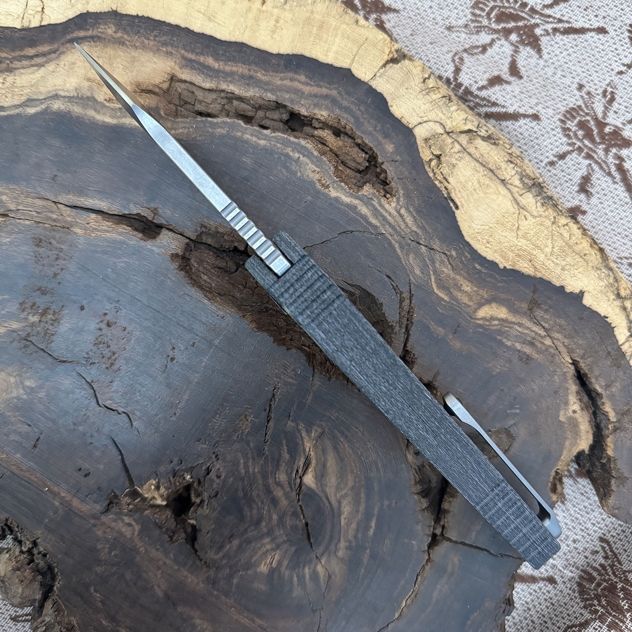 The Heretic Knives Pariah stands out from the crowd as it name implies. Now available in either automatic or button lock manual configurations. The handle is comfortable in the handle and features well-placed inlays where your fingers and palm rest to provide a firm grip. Jimping around the edges and spine of the blade. Complete with a lanyard hole and a milled rollerball pocket clip for tip-up carry.