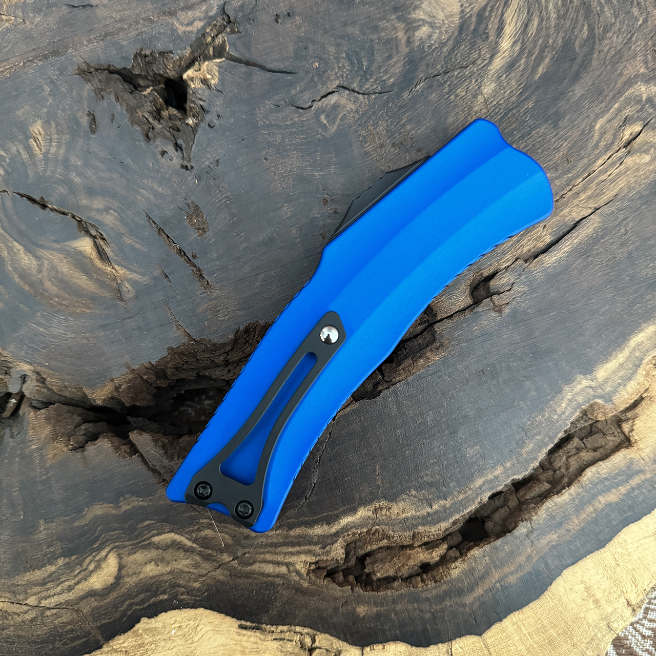 The Heretic Knives ROC (pronounced Ruk) is an out the front auto with unique curved blade. Typical Heretic top notch quality, fit and finish, and super smooth D/A OTF action. It features a side mounted thumb slide for easy operation. The handle is curved to accomodate the hawkbill blade. The first high quality curved D/A OTF auto and it is fantastic. Includes a milled titanium rollerball pocket clip that has a subtle curve to match the handle. This one is sure to turn heads!