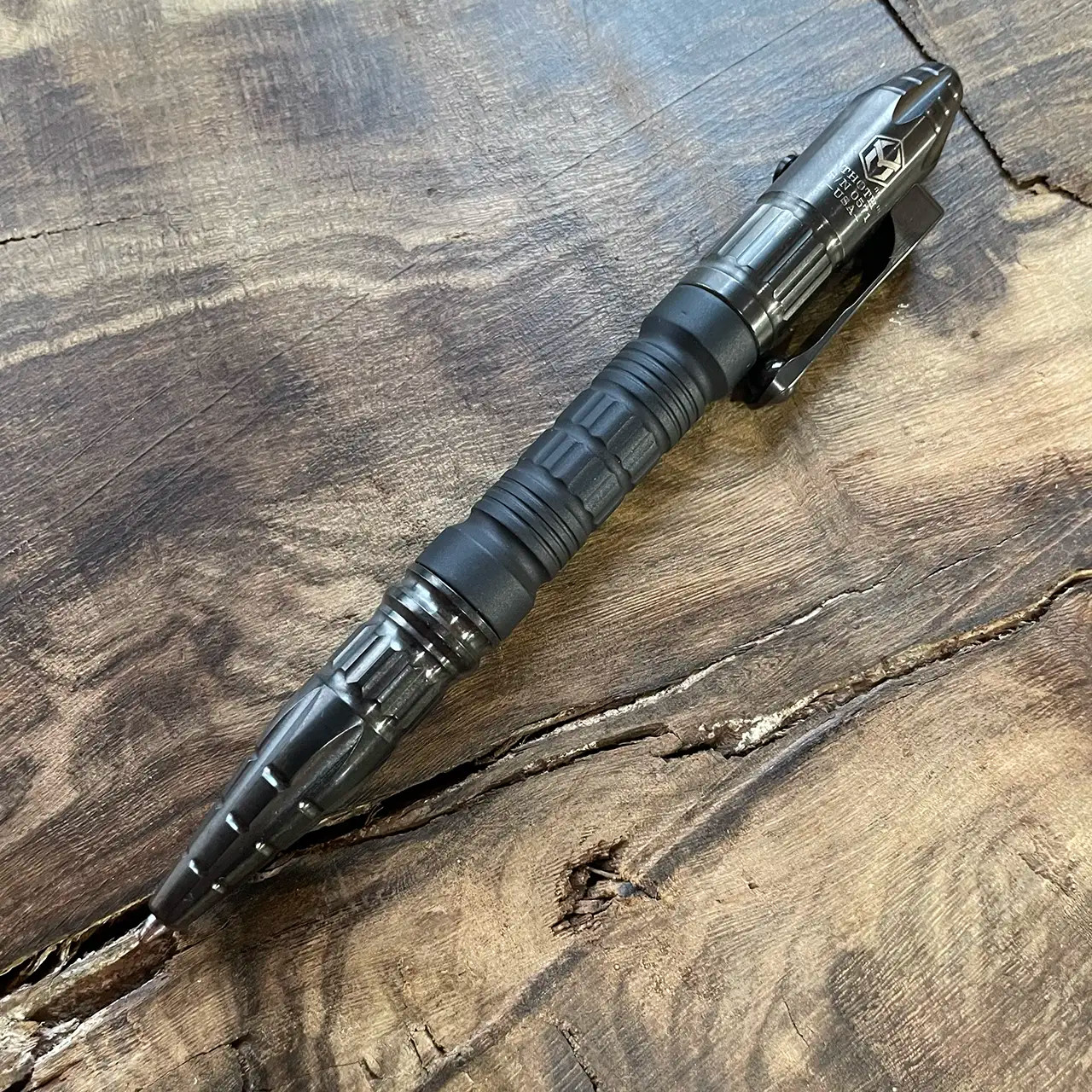 The Thoth from Heretic knives is a modular bolt action pen meaning it can be used at two different lengths. Full size overall length is 5" and length with the center barrel and ink cartridge extension removed is 3-1/2". No addtional purchase is required to run the pen at either length. A high quality, USA Made titanium bolt action pen!
