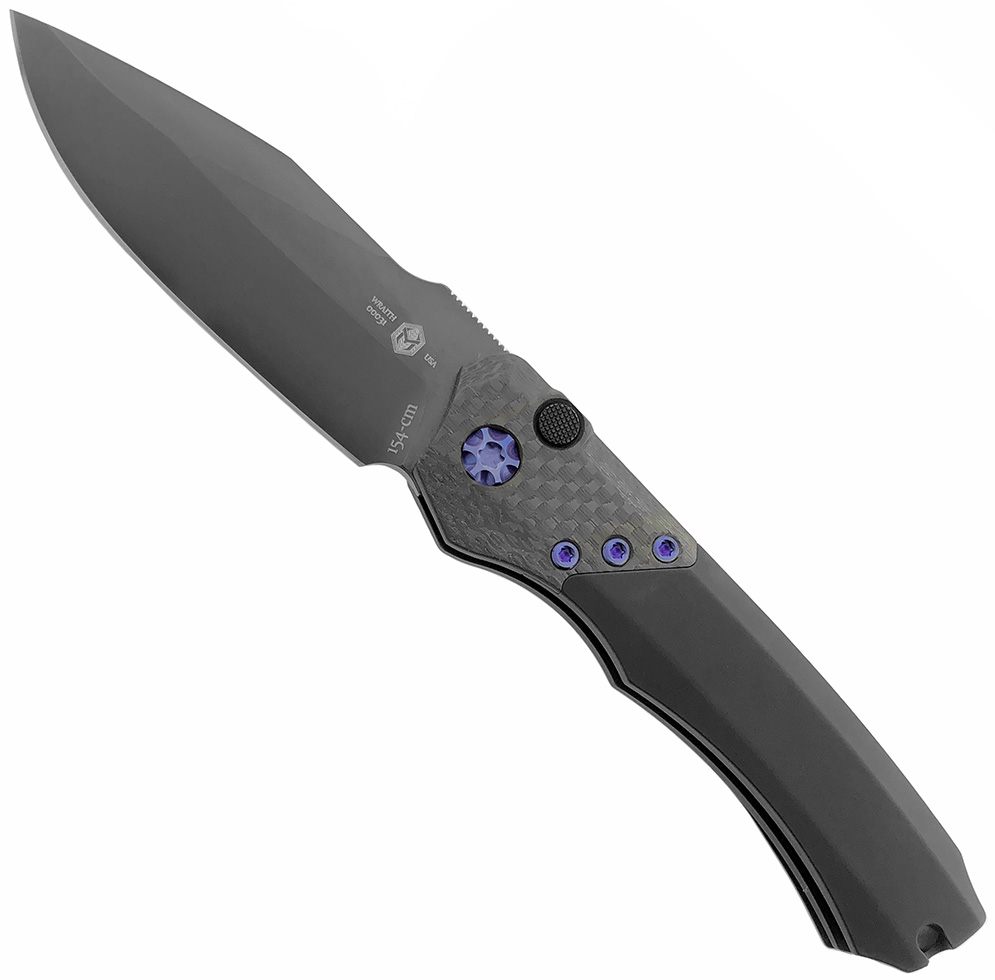 Heretic Knives Wraith Auto Carbon Fiber Bolster DLC Blade Blue Ti Hardware H000-6A