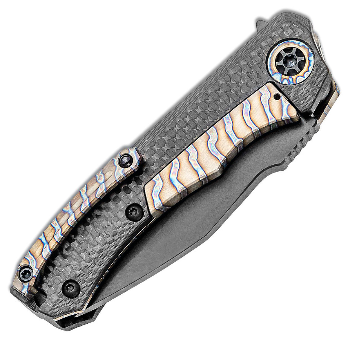 Heretic Knives Wraith Manual S/E Carbon Fiber Handle w/ Flamed Ti Bolster DLC Blade H001-6A-CFFTI