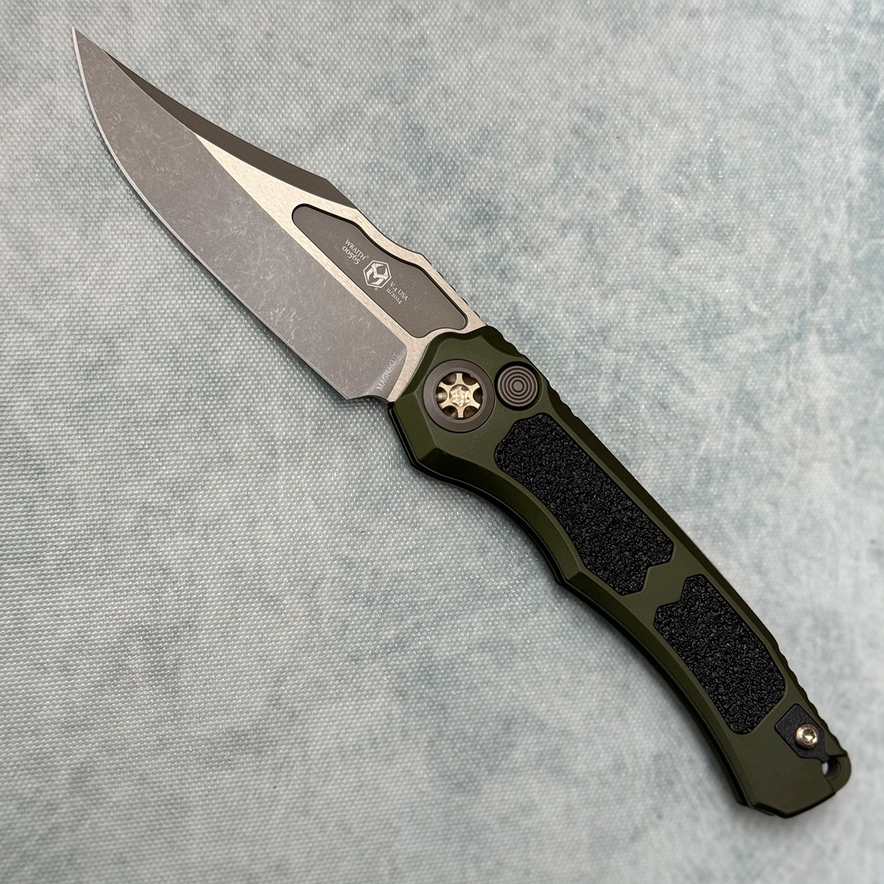 Heretic Knives Wraith V4 Auto Bowie Green Handle w/ Black Grip Tape Inlays Bronze Standard Blade H002-7A-GRN