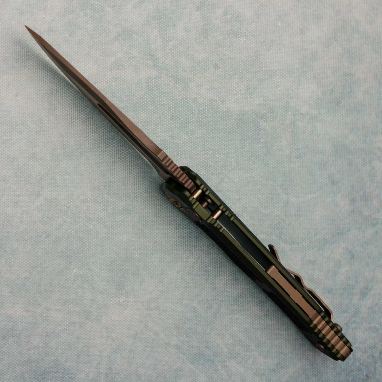 DROPPING AT 11AM CENTRAL 3-10-2026! Introducing the new production V4 Wraith - These V4 Wraith have a bronze MagnaCut clip point blade with an od green aluminum chassis and black grip tape inlays. Bronze hardware. Brand new in box.