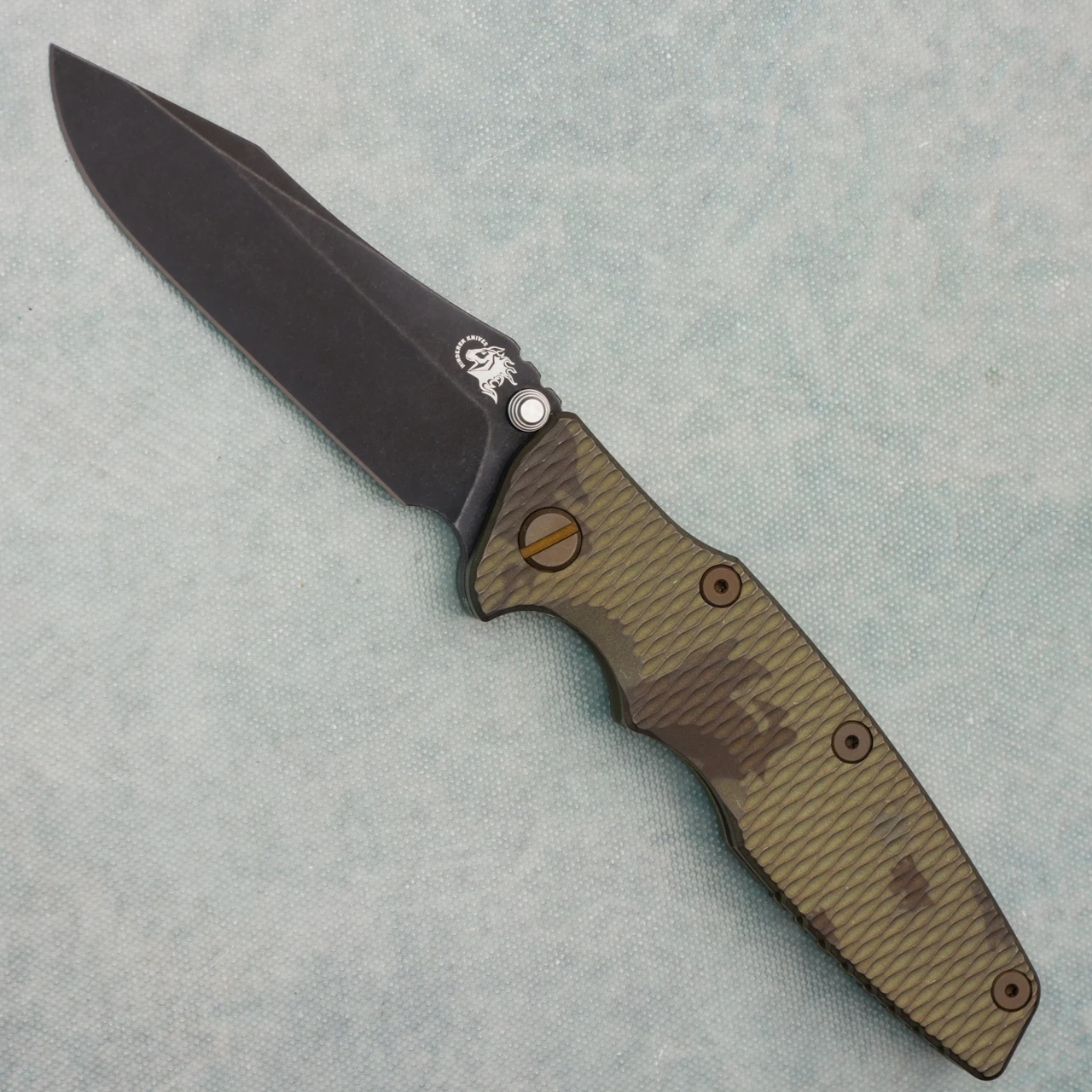 Hinderer Knives Eklipse 3.5" Spear Point Non Flipper Tri-Way Battle Green/Bronze Titanium Handle Battle Black MagnaCut Blade (Consignment)