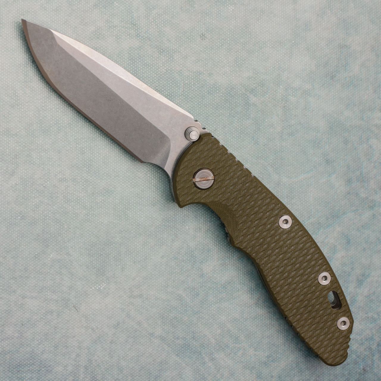 Hinderer Knives XM-18 3.5" Gen III Non-Flipper Spanto OD Green G10 Stonewash Titanium Handle Stonewash CTS-XHP Blade (Pre-owned)