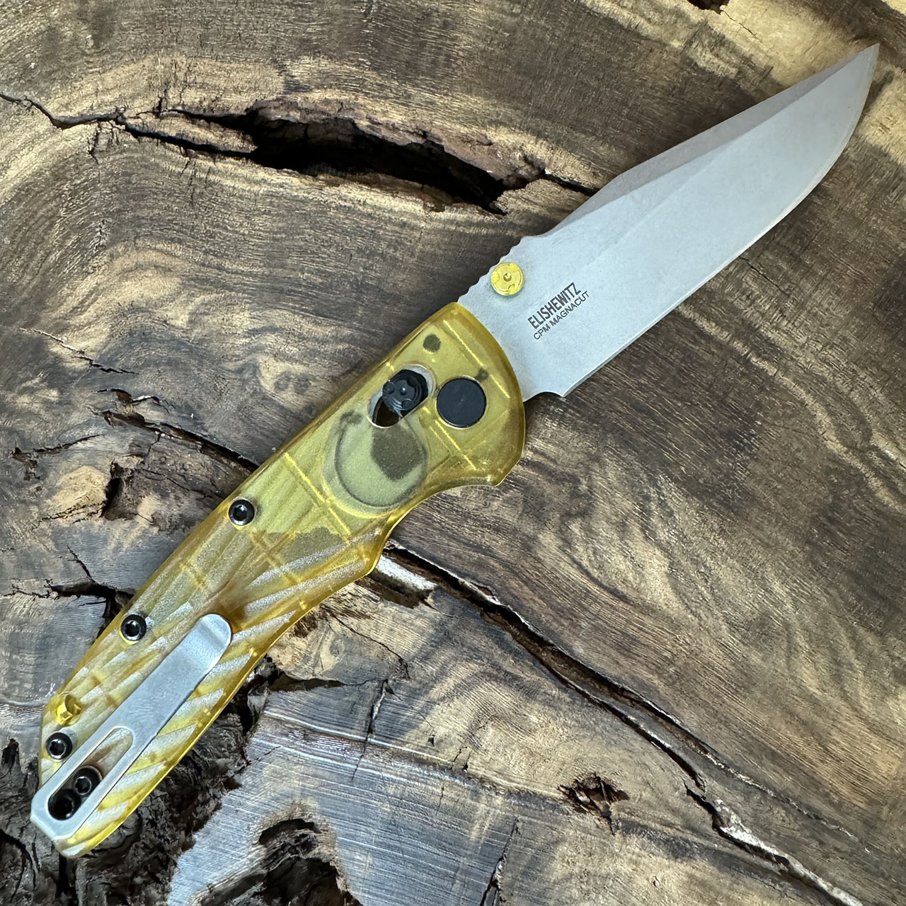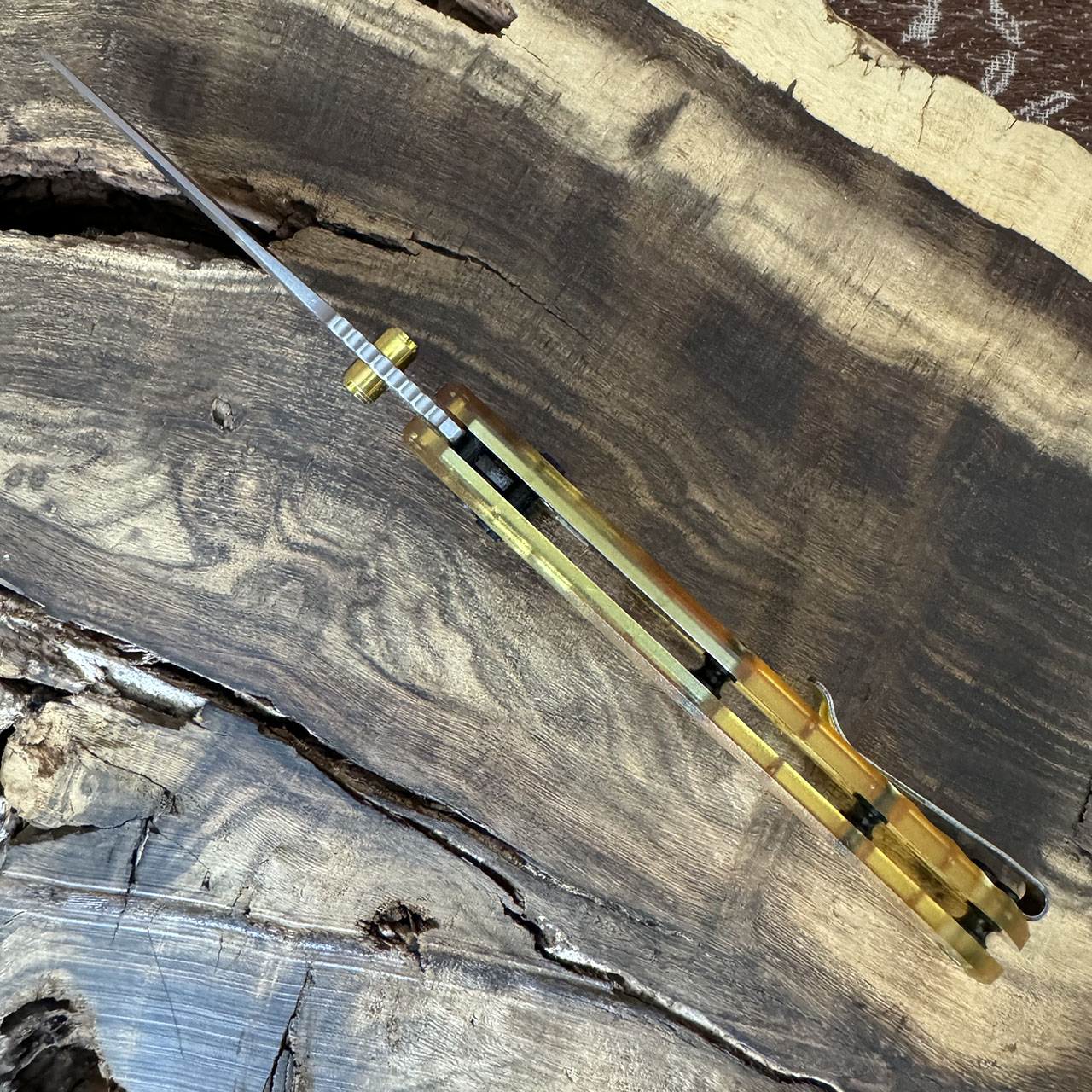 The Deka folder features ultem handles with an attractive pattern. The knife comes with a clip point CPM-MagnaCut Stonewashed Blade. The ambidextrous blade is easy to deploy thanks to the included thumstuds. The knife comes with the ABLE Lock system that secures the knife while open or closed. This version has a stonewashed deep carry reversible clip. These are a great bang for your buck! This was a blade HQ exclusive we got in new condition from a private collector.