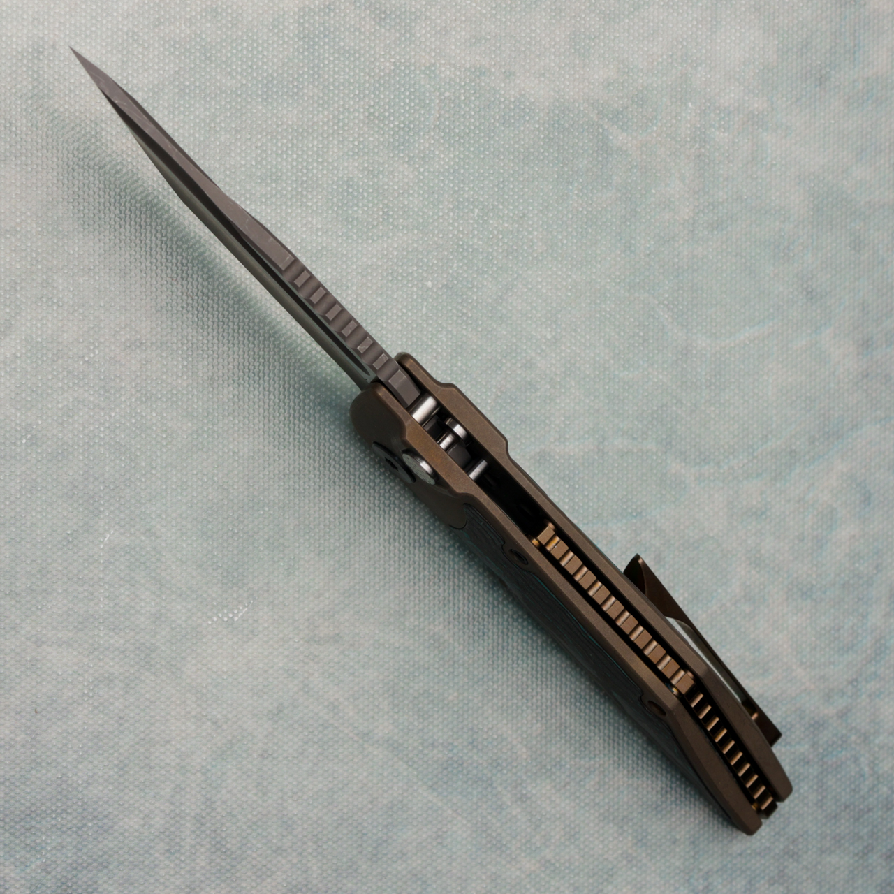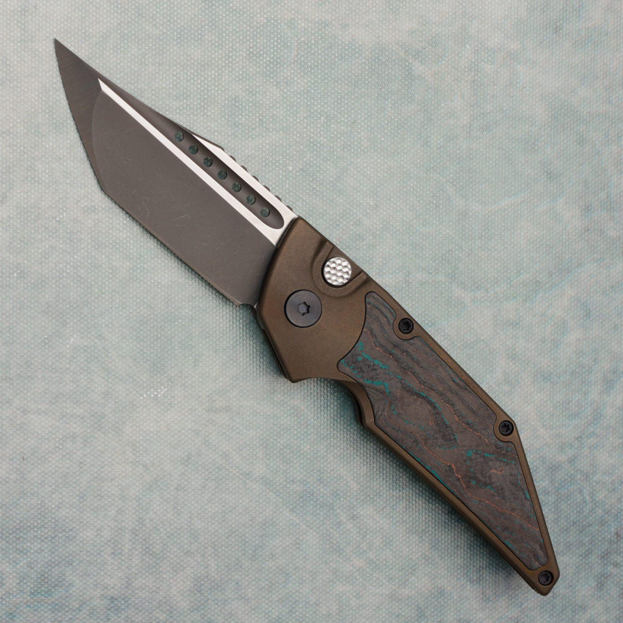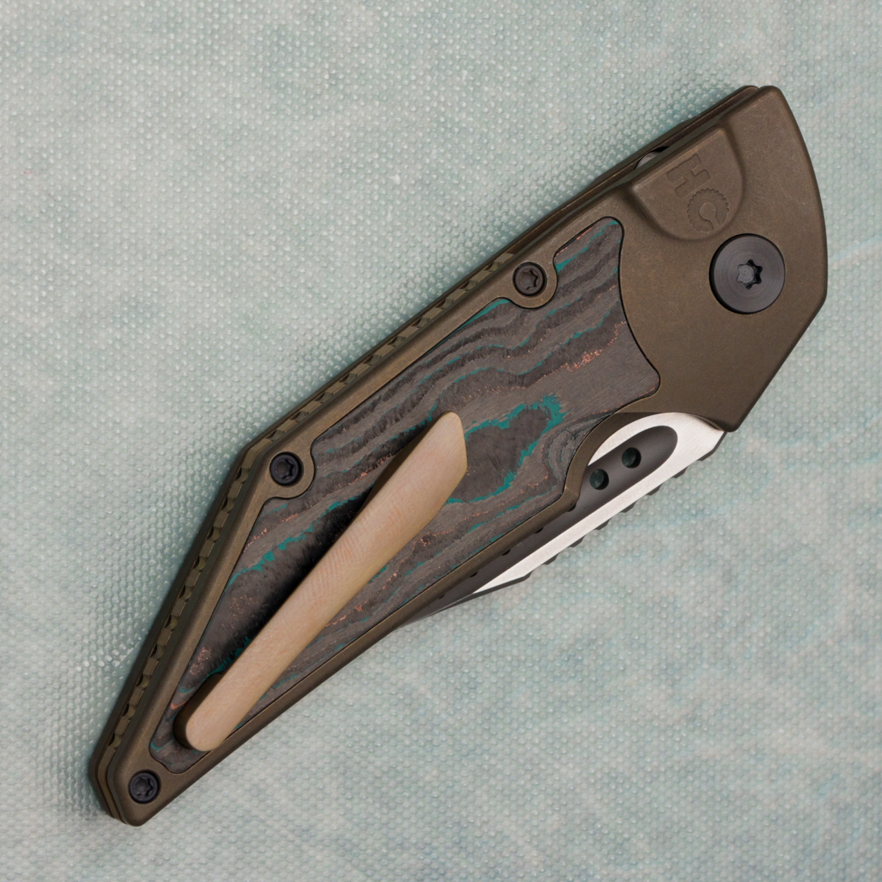 Hypercut Manufacturing Dharma Auto Bronze Titanium Handle w/ Shipwreck Camo Carbon Inlays 2-Tone Blade