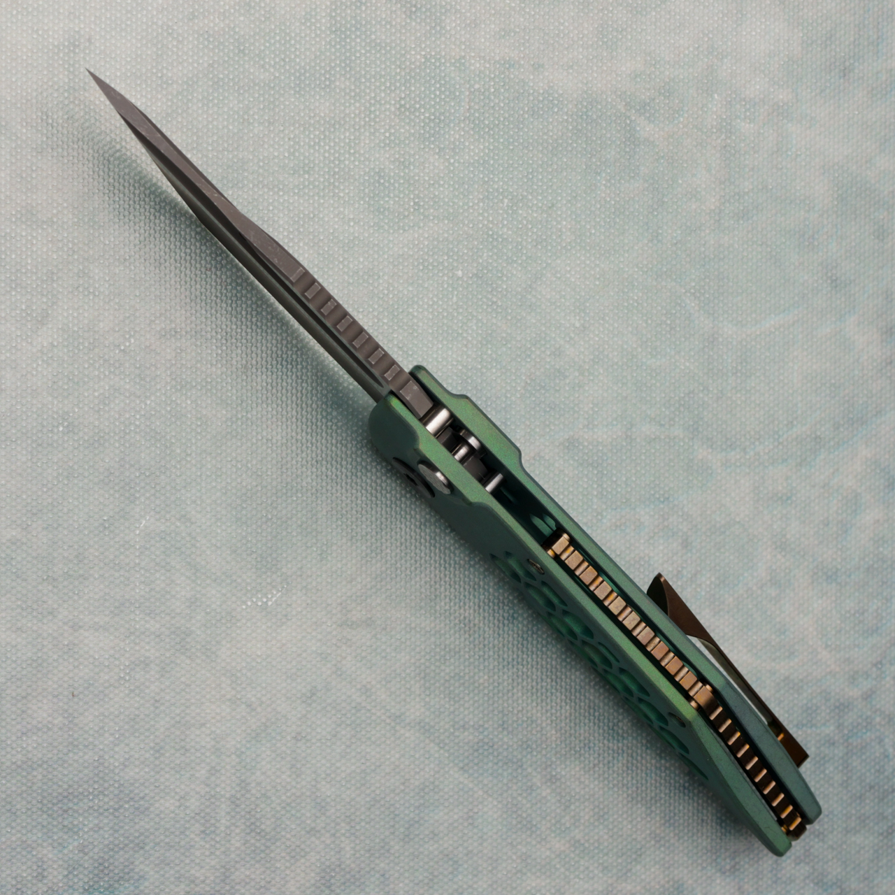 Hypercut Manufacturing Dharma Auto Green/Bronze Titanium Honeycomb Handle 2-Tone Blade