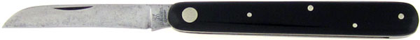 Slick black delrin handle scales. Carbon steel wharncliffe blade that has good snap with light pitting that gives it character. Tang stamped J.A. HENCKELS GERMANY - 775. Nickel silver liners and handle pins. Steel back spacer. Made in Solingen, Germany by J.A. Henckels knives.