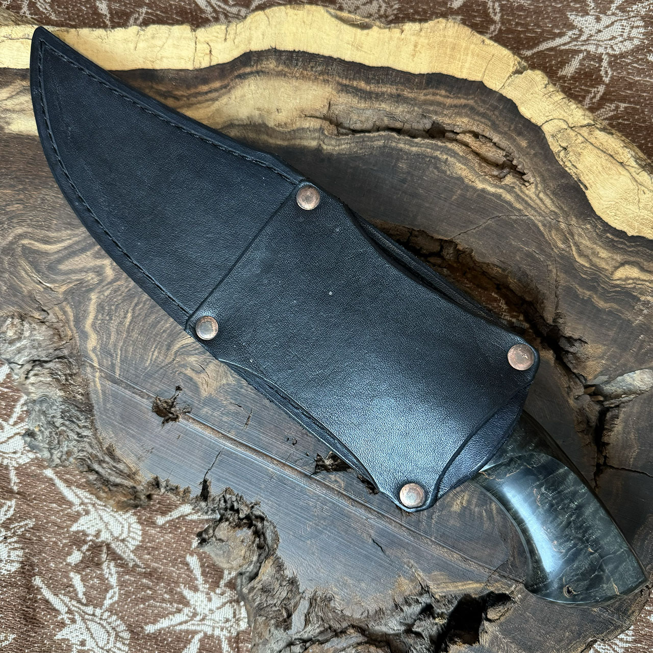 Jan Hafinec Custom Fixed Blade Dyed Box Elder Handle Damascus Bowie Blade