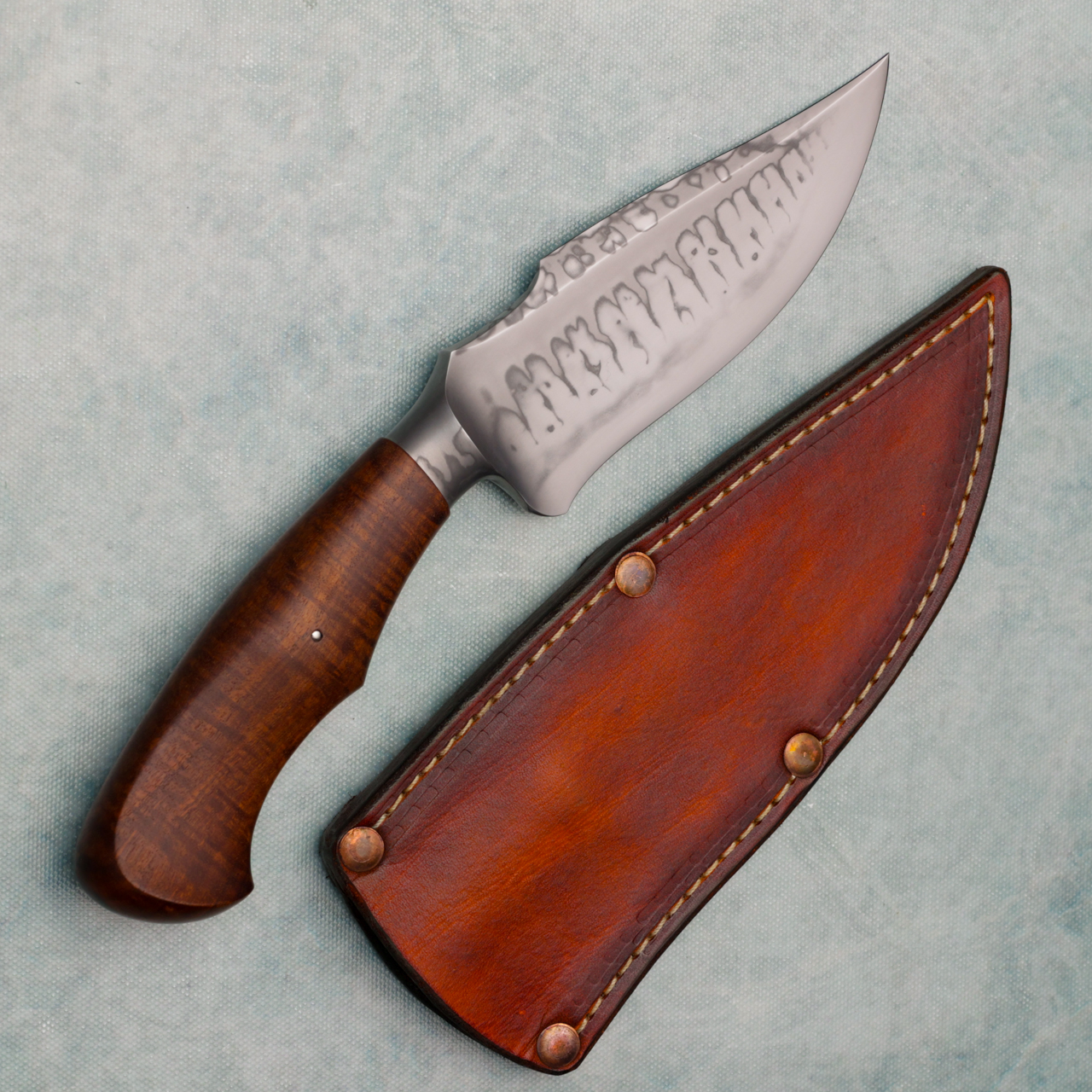 Jan Hafinec Custom Fixed Blade Gidgee Wood Handle Signature Flamed Hamon Bowie Blade