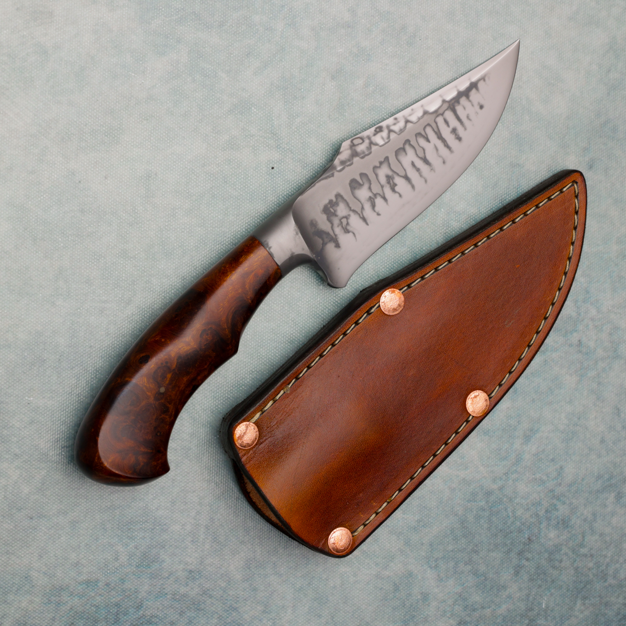 Jan Hafinec Custom Fixed Blade Ironwood Handle Signature Flamed Hamon Bowie Blade