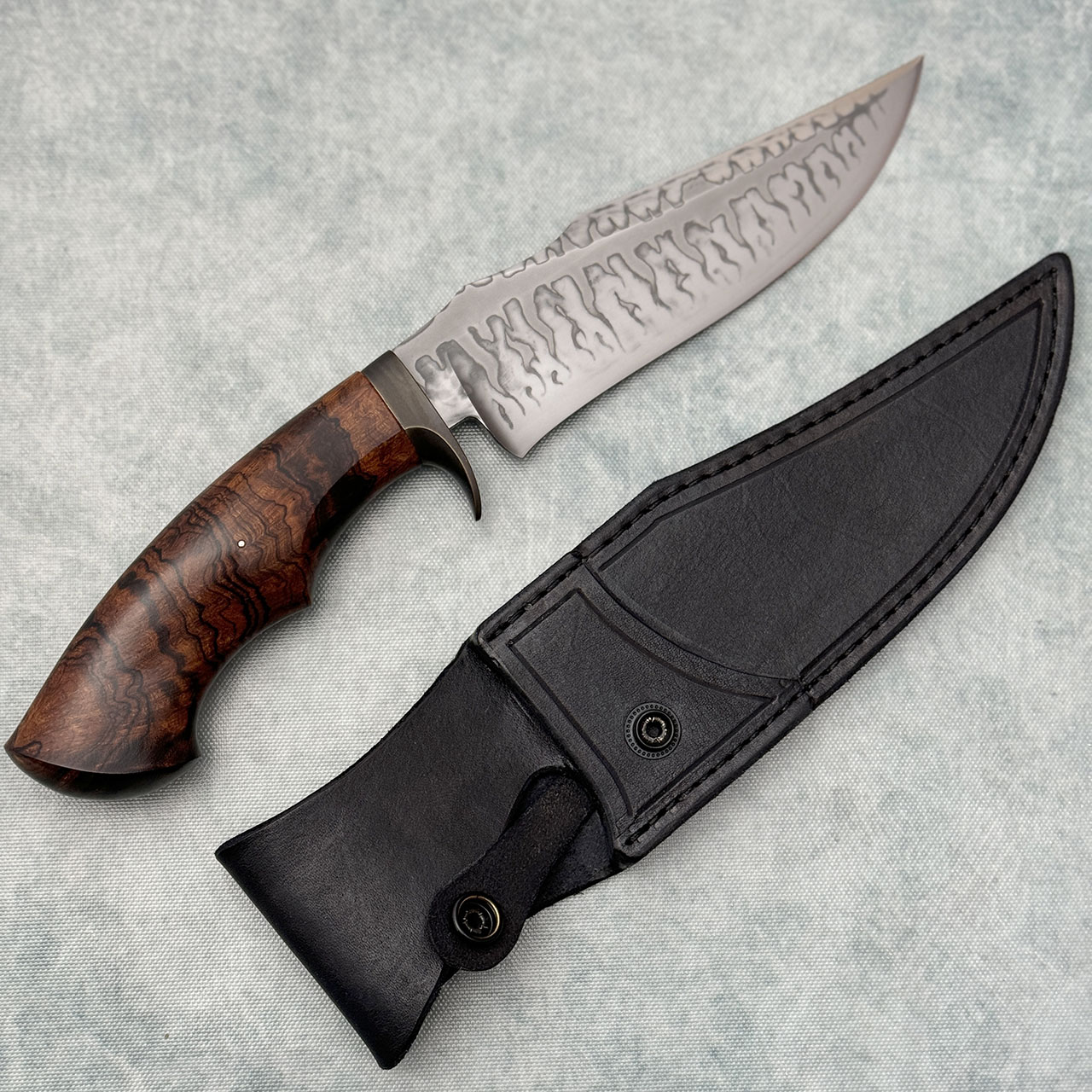Jan Hafinec Custom Hunter Fixed Blade Desert Ironwood Handle Signature Flame Hamon Blade