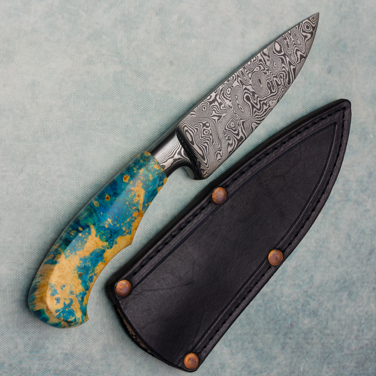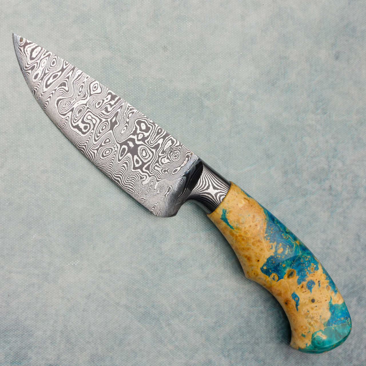 Jan Hafinec Custom Integral Hunter Fixed Blade Dyed Stabilized Wood Handle Damascus Blade