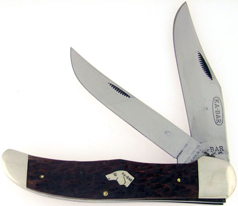 Ka-Bar Dog's Head Two Blade Folding Hunter Caramel Bone