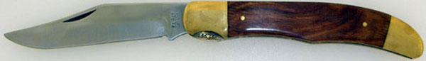 This old, discontinued Ka-Bar has a large single clip point blade and a locking liner. Brass bolsters and rich grain wood handles, brass liners. Tang stamped KA-BAR USA 1183. A great old knife anyone would love to use or collect.