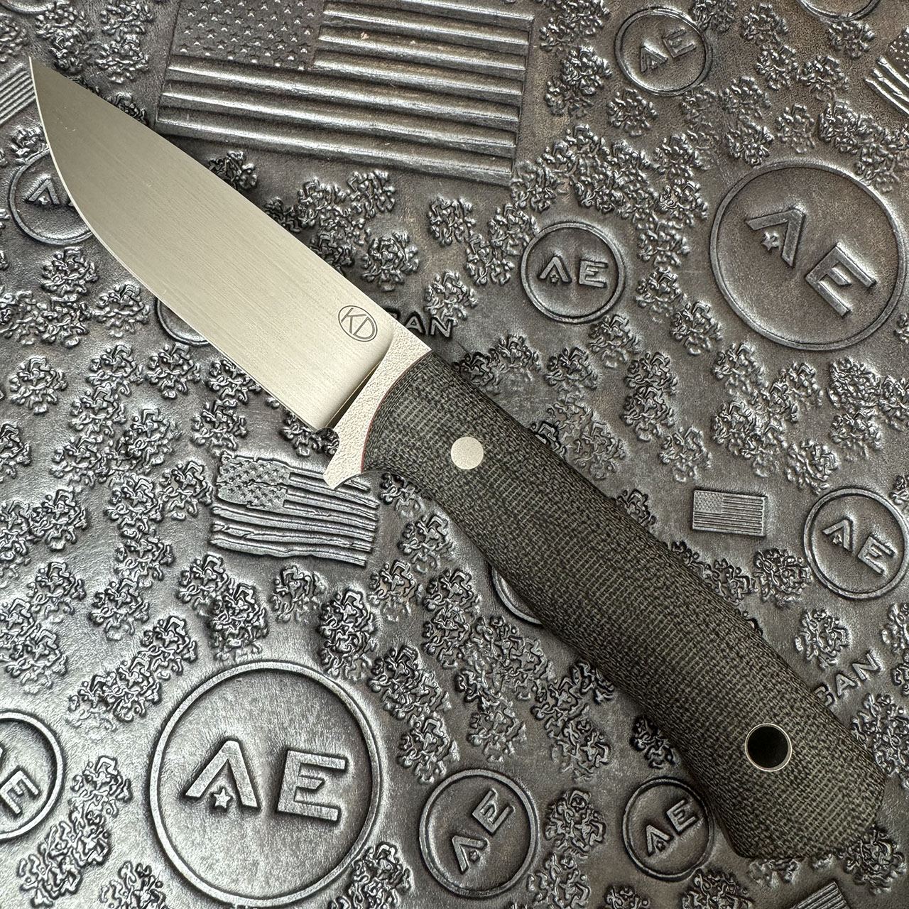 Kamil Dlugosz Custom Traveler Fixed Blade Black Canvas Micarta Handle w/ Red G10 Liners Satin Blade